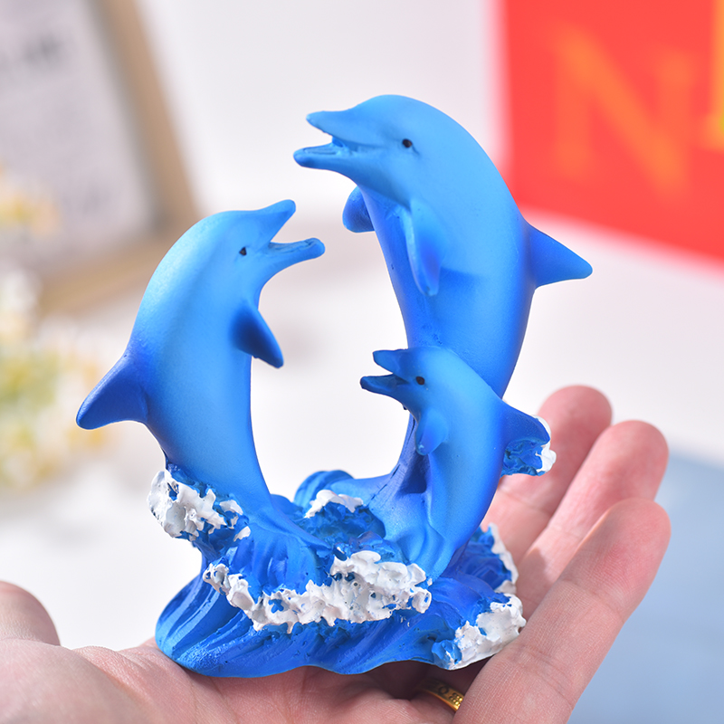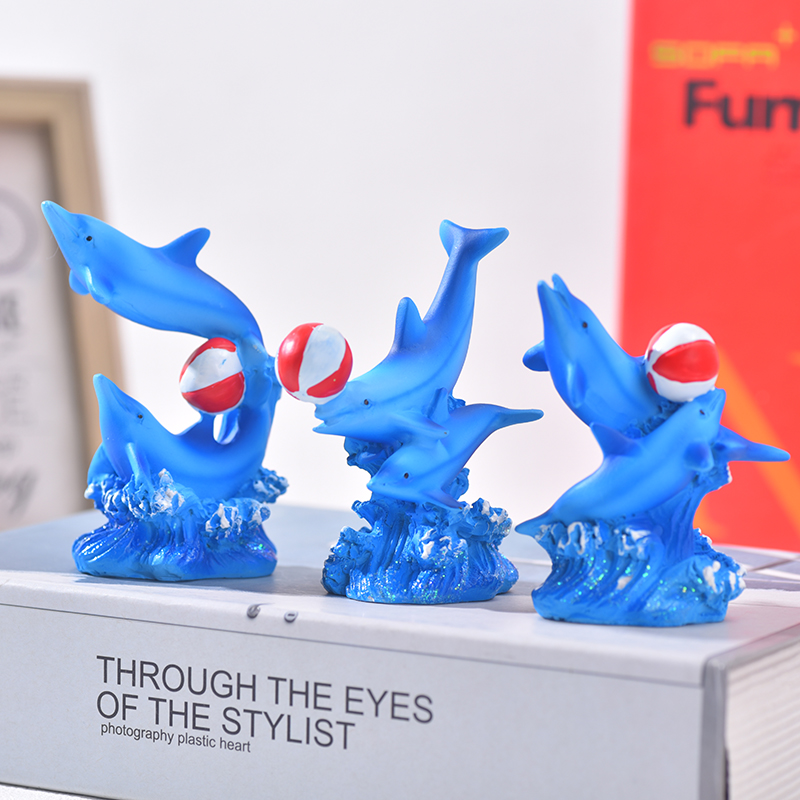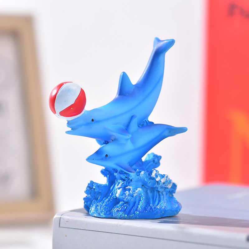 海洋馆海豚宝宝创意摆件蓝色可爱海豚顶球桌面陈列男孩女孩礼物