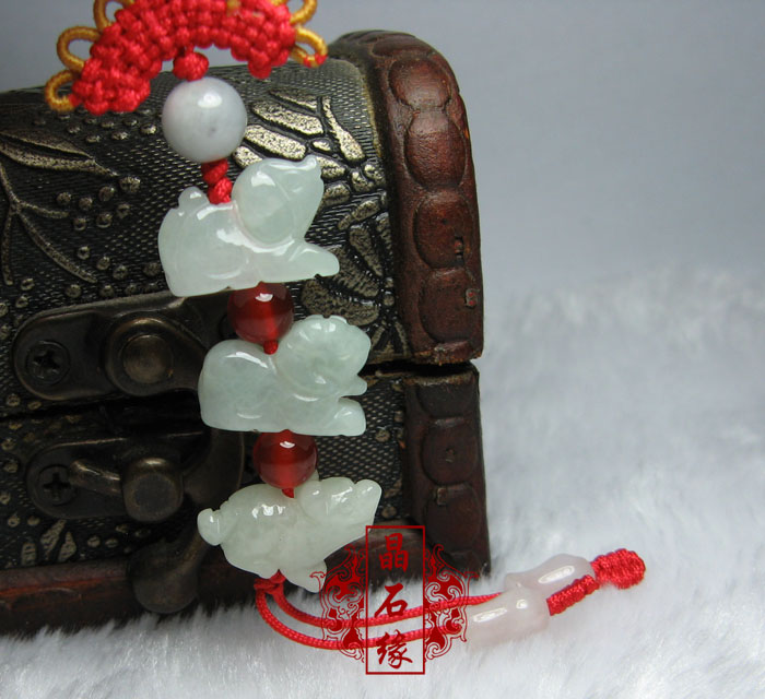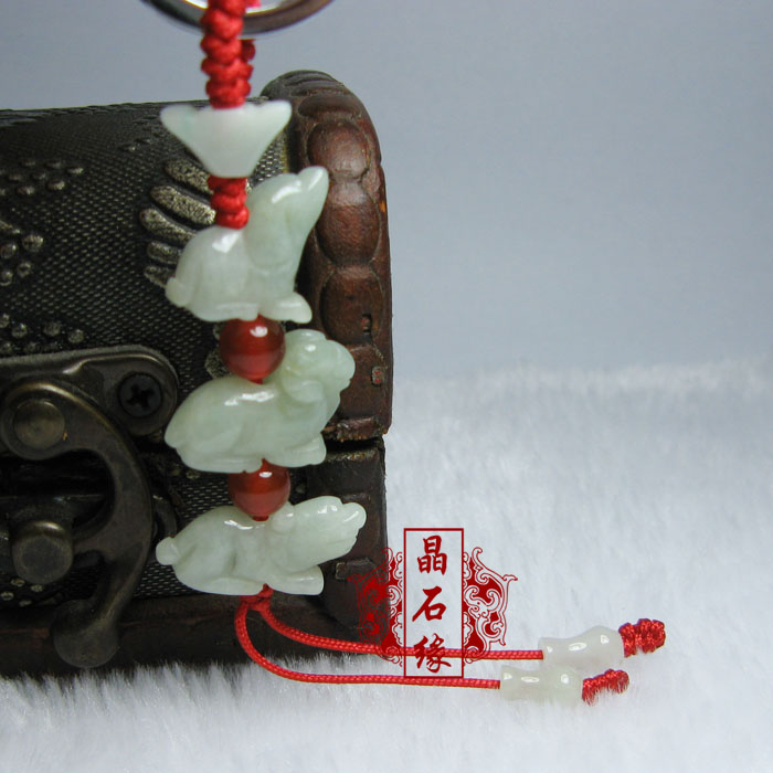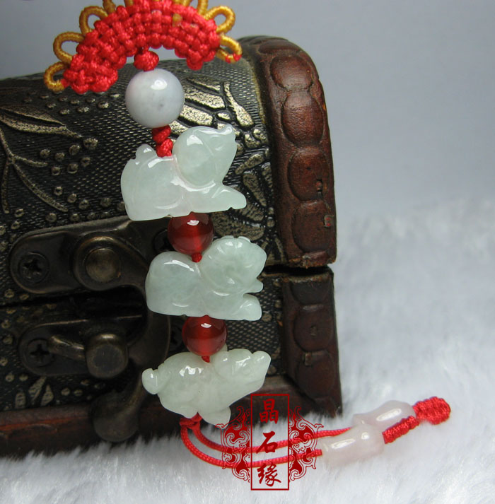 天然翡翠玉生肖狗虎羊红绳手链属马人钥匙扣手机链腰包挂