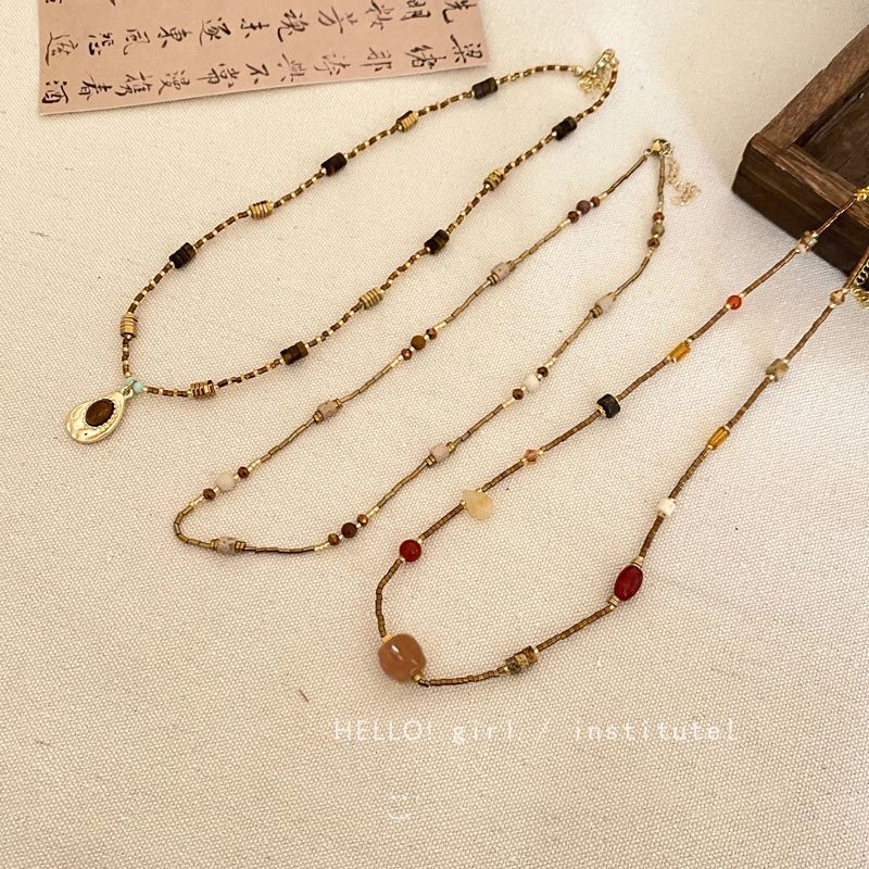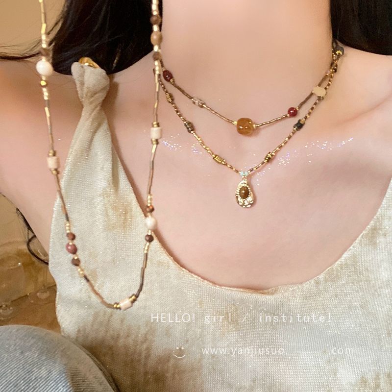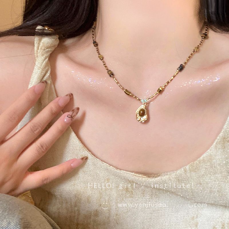 复古美式虎眼石项链女2025新款高级感毛衣链配饰轻奢小众颈链吊坠