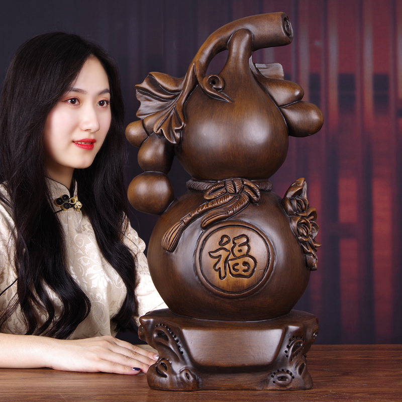 葫芦摆件大号实木雕招财工艺品中式家居客厅玄关电视柜酒柜装饰品