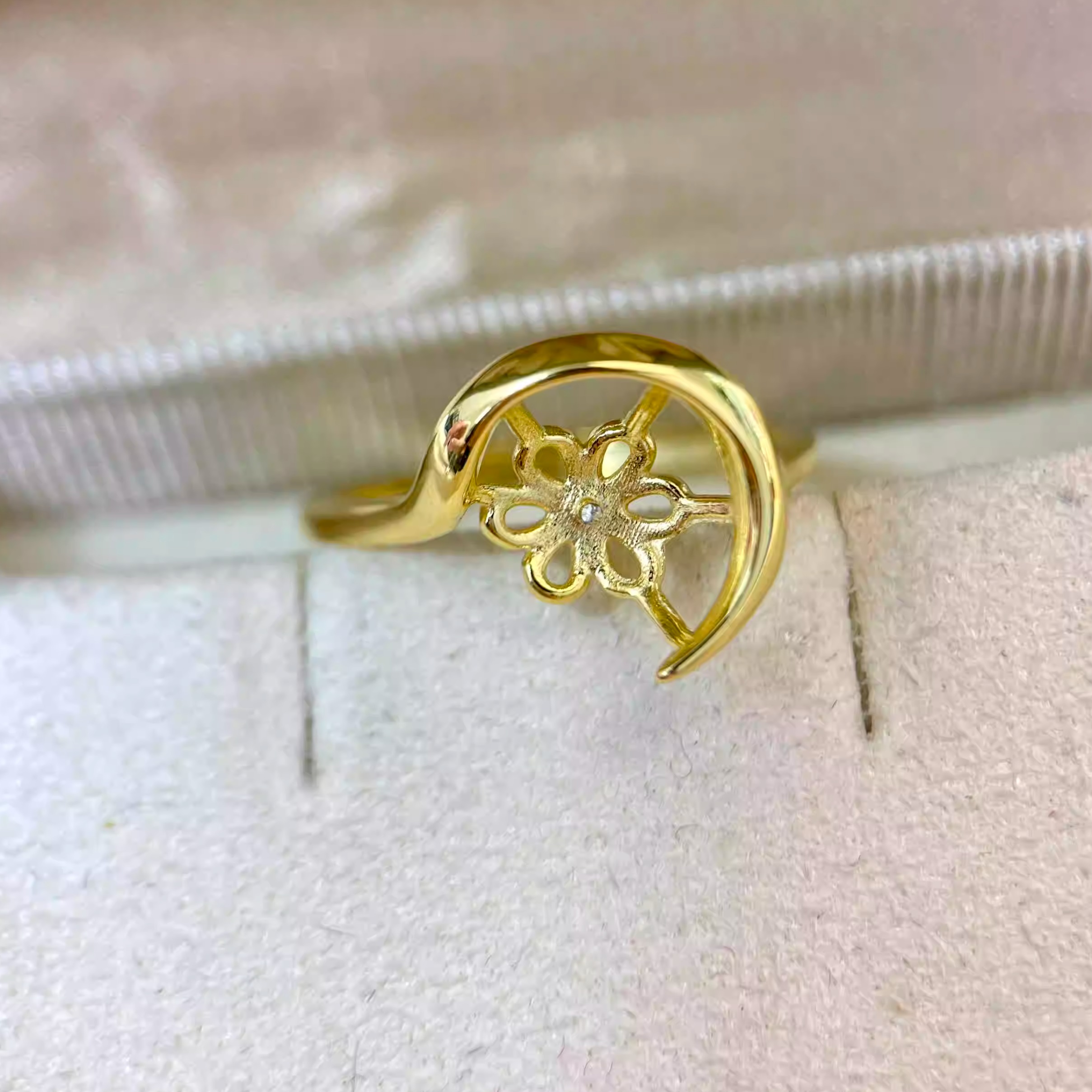 DIY珍珠配件新款S925纯银半包围光面戒指空托简约精致时尚百搭