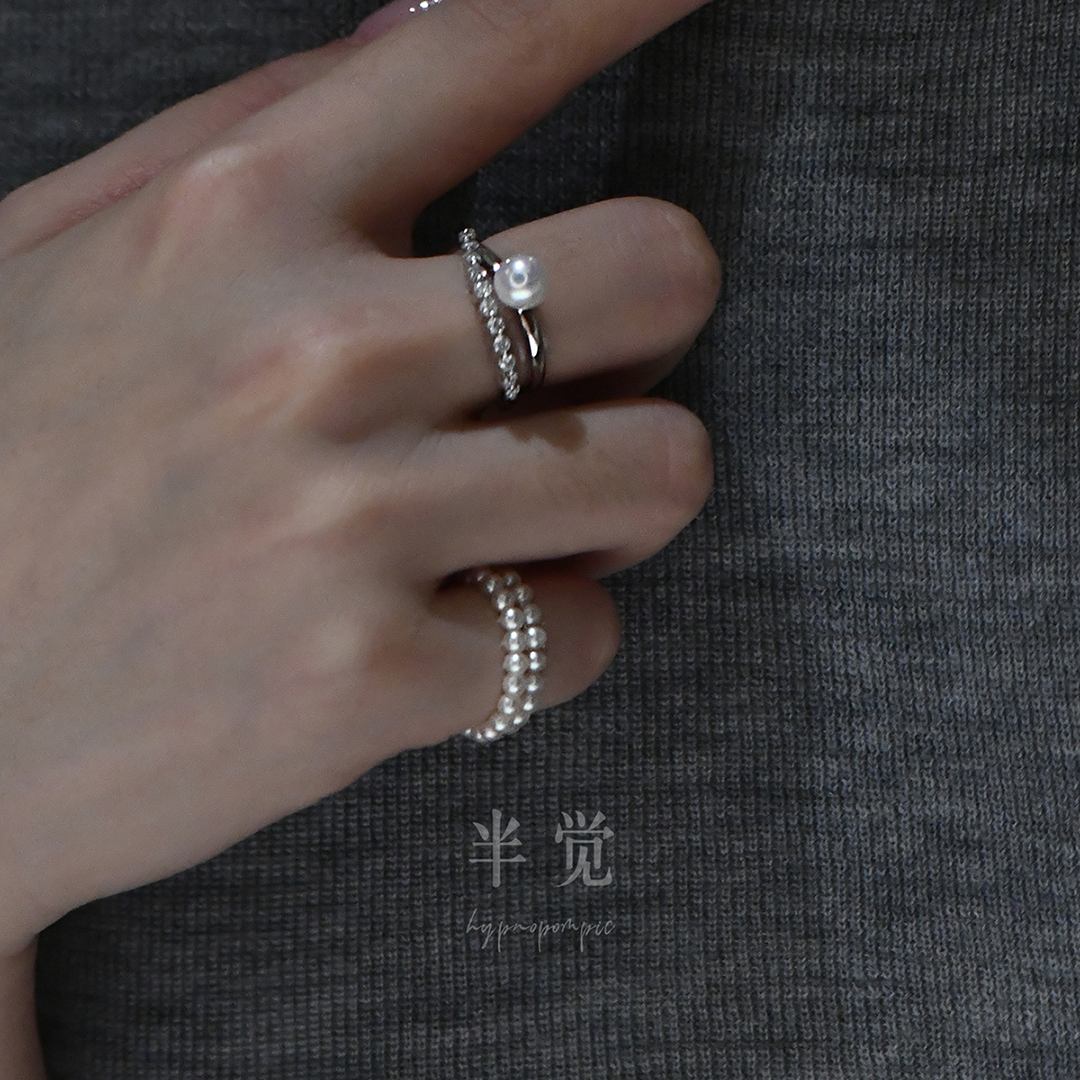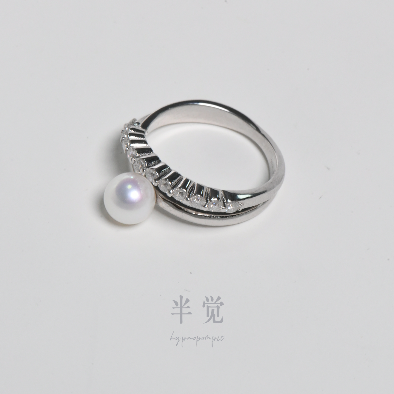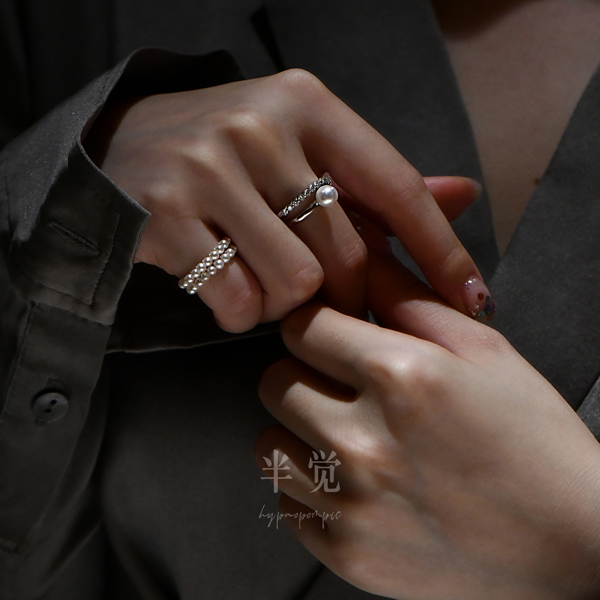半觉【一心一意】系列单排莫桑钻极光珍珠纯银通勤极简百搭戒指