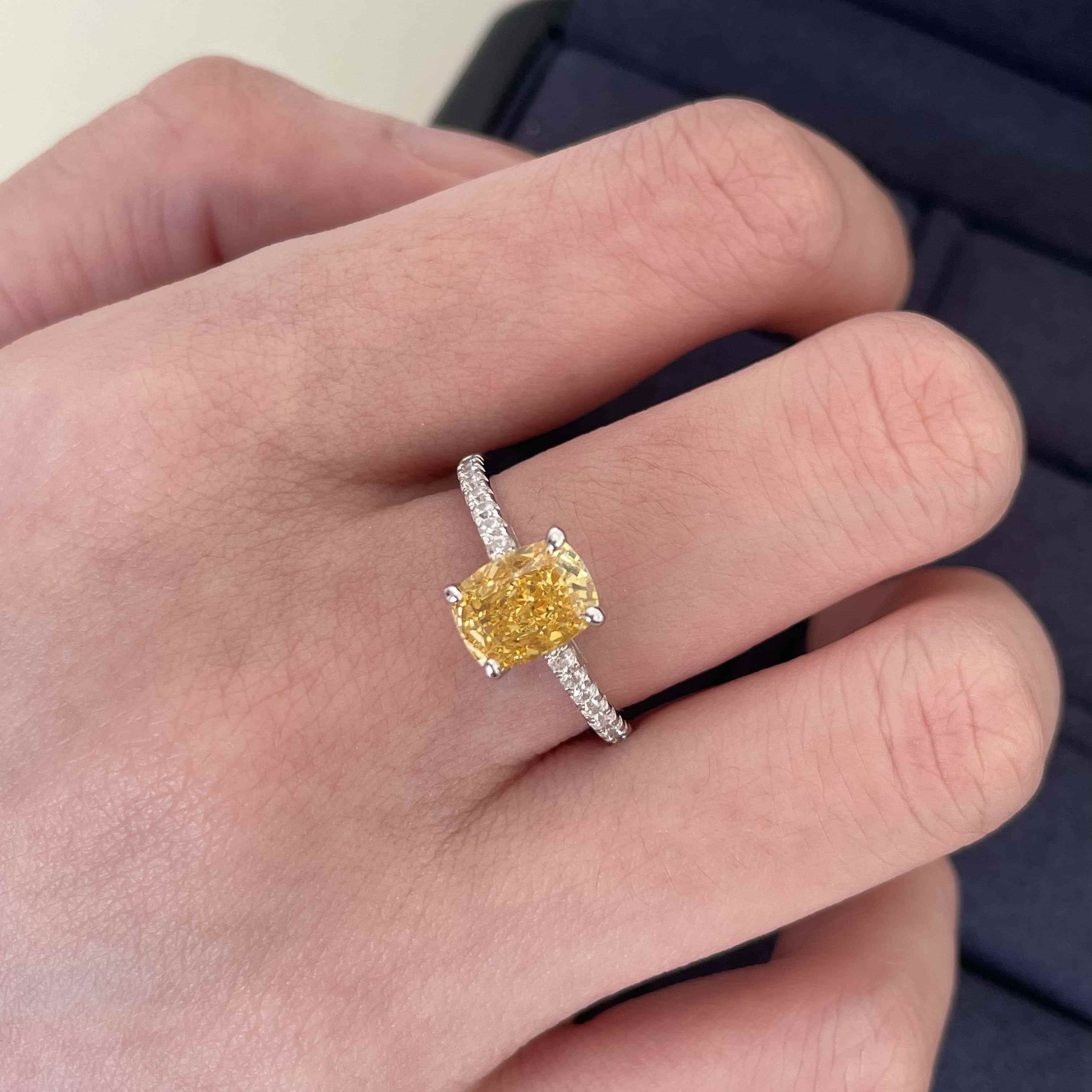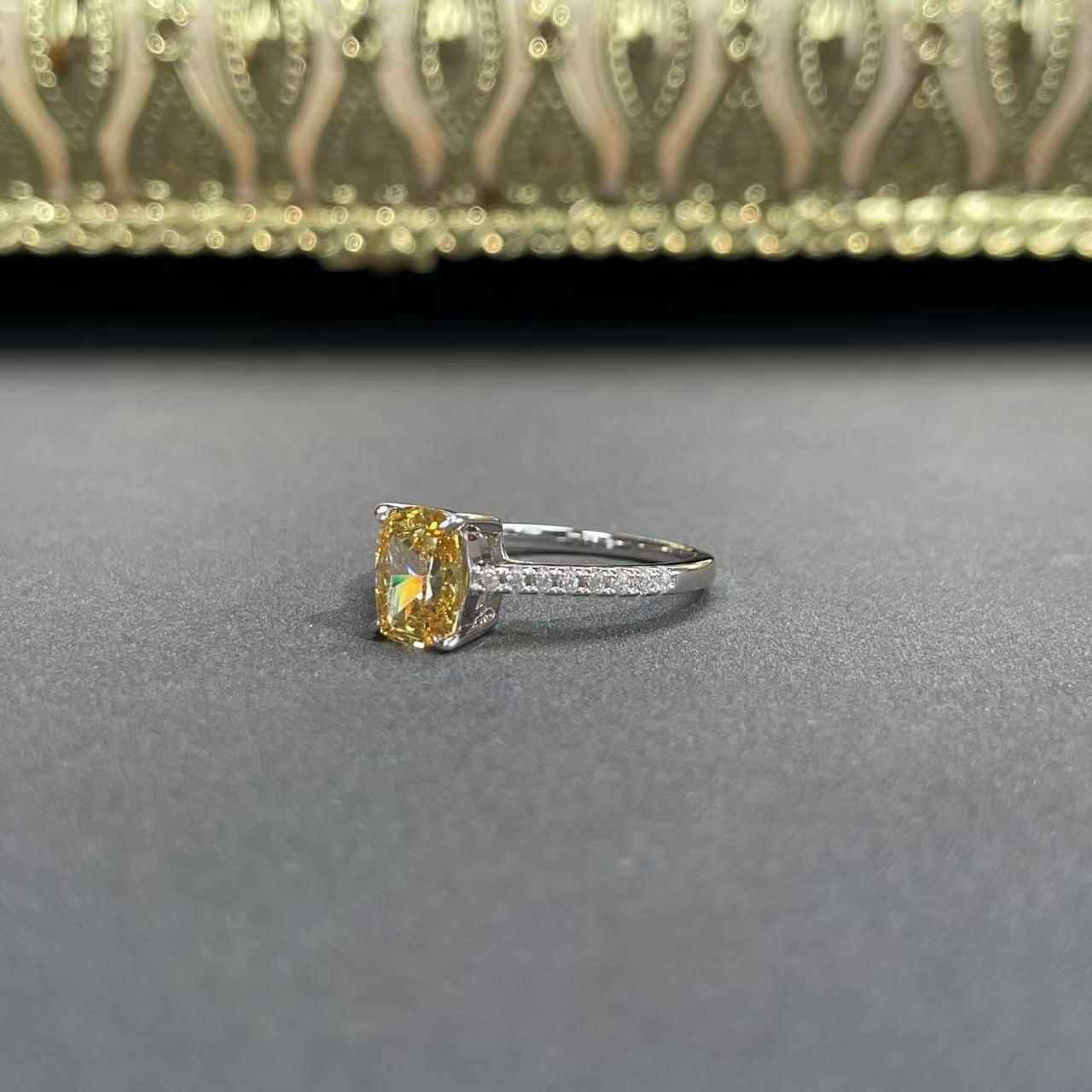 一克拉冰花切黄钻戒指s925纯银椭圆培育高碳钻指环高级感饰品