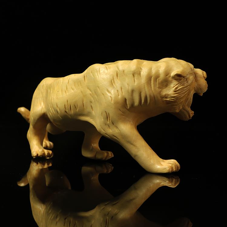 黄杨木雕老虎创意家居装饰品中式工艺品现代摆件动物木质雕刻把玩