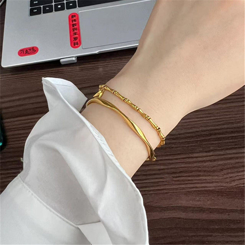 古法传承金包银莫比乌斯环手镯女波浪素圈实心镯子手环送女友礼物