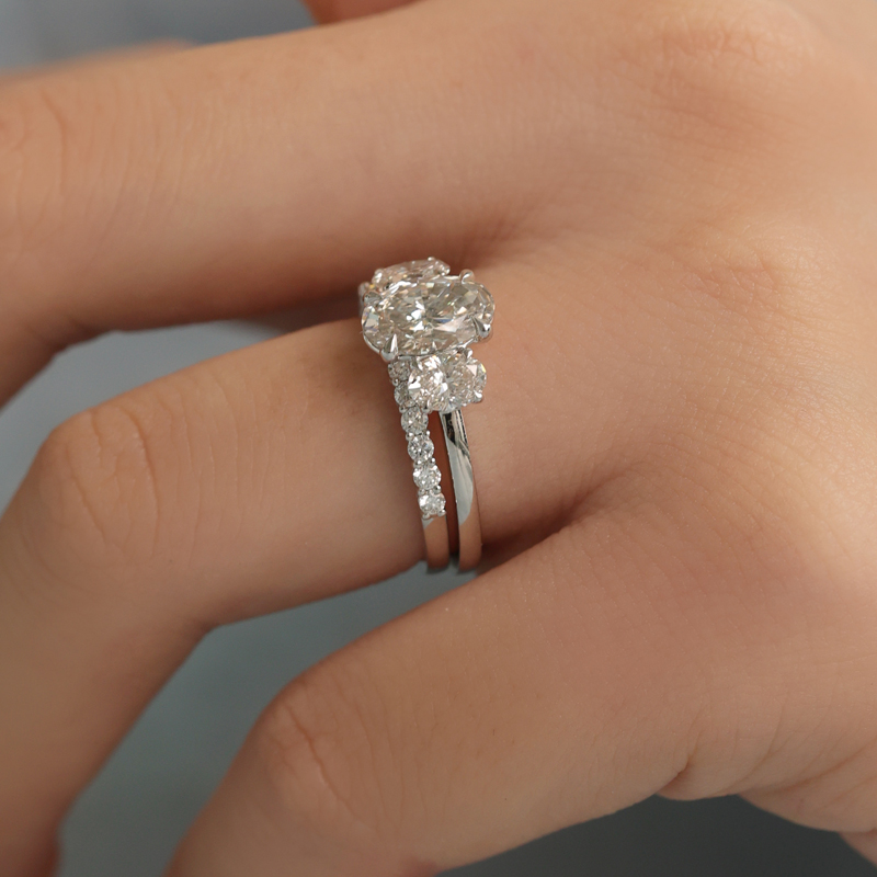 【培育】Vrai/芮爱 天鹅城堡圆钻婚戒三石系列铺钻排钻戒指女