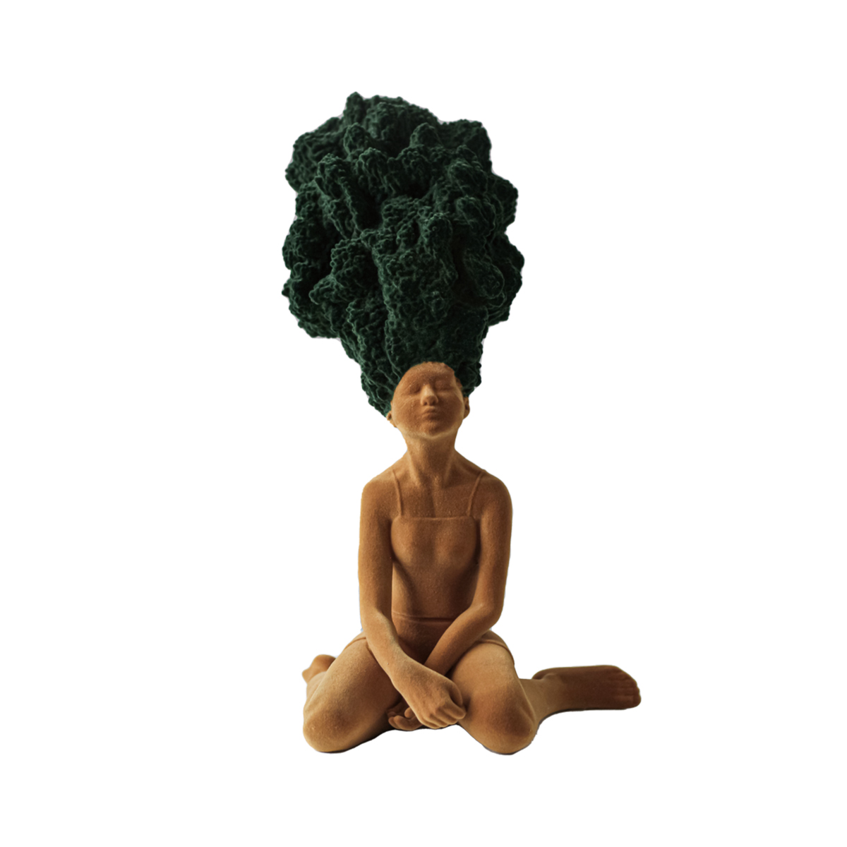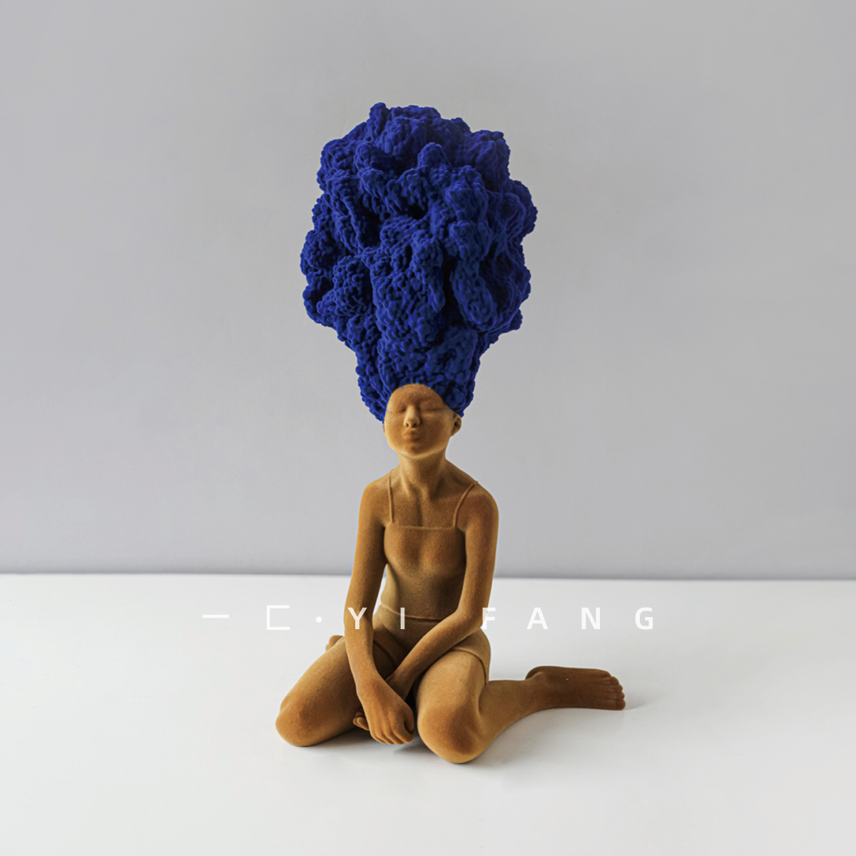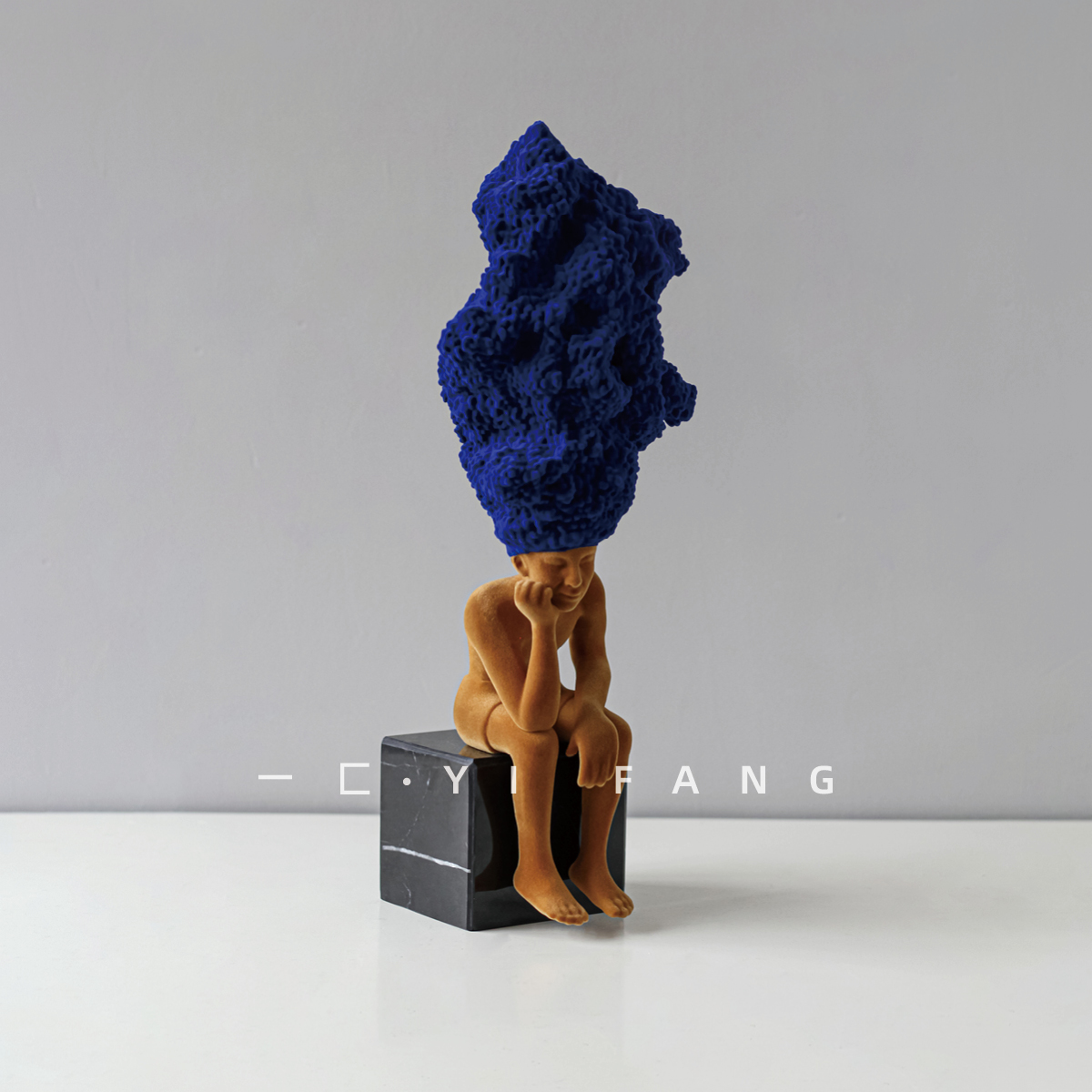 一匚植绒创意小女孩拼色摆件样板间售楼处儿童房客厅人物软装饰品