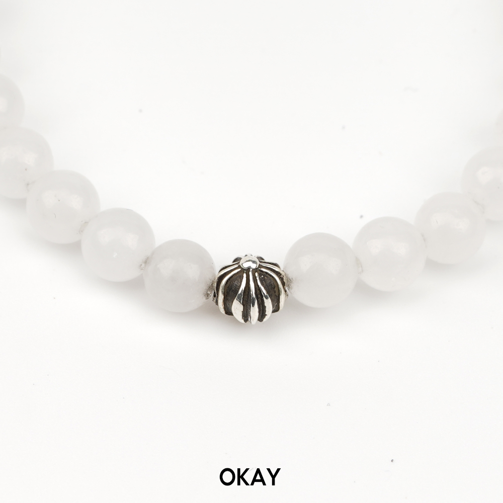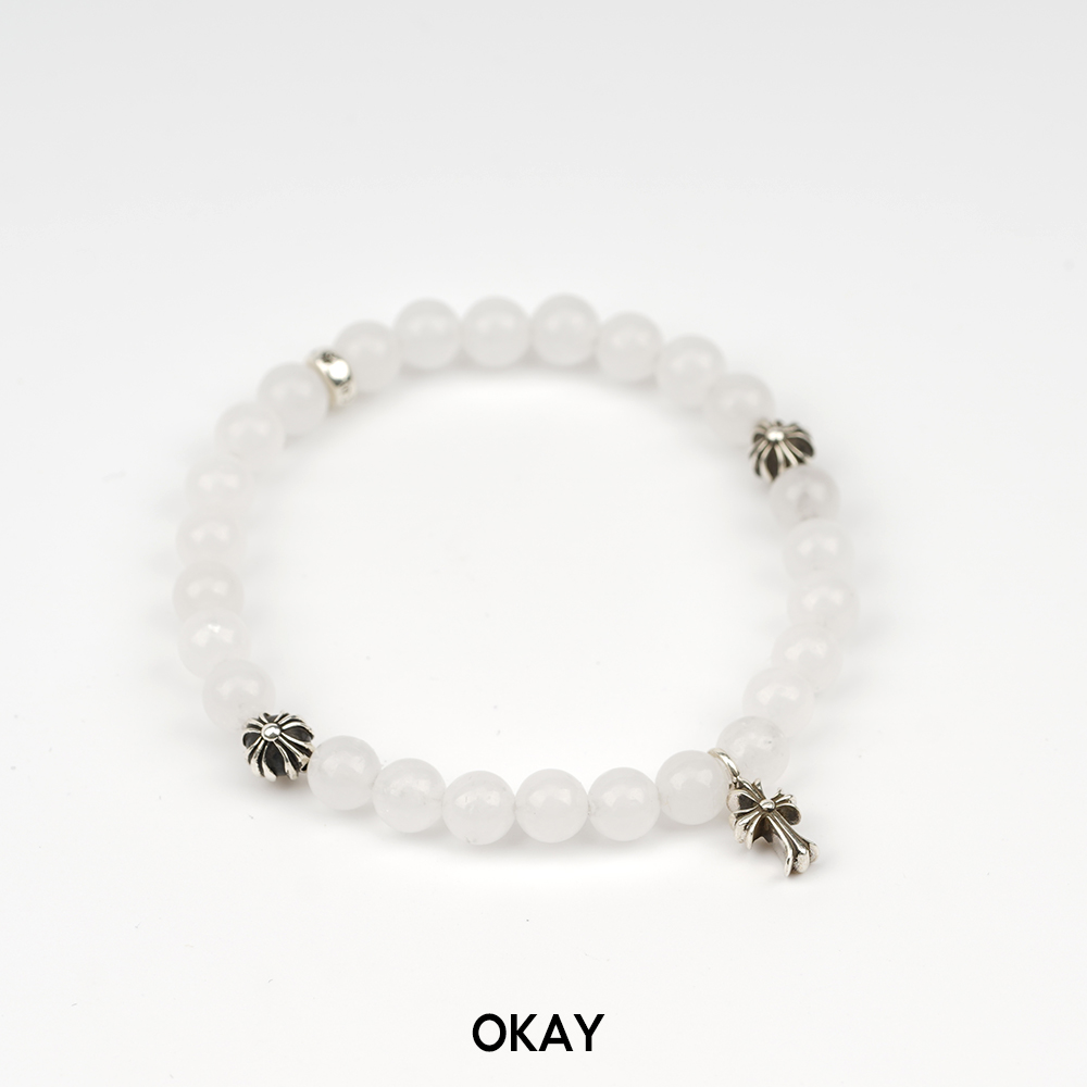 罗心潮流 白色白玛瑙摇滚十字架手串 925纯银珠子手链串珠链