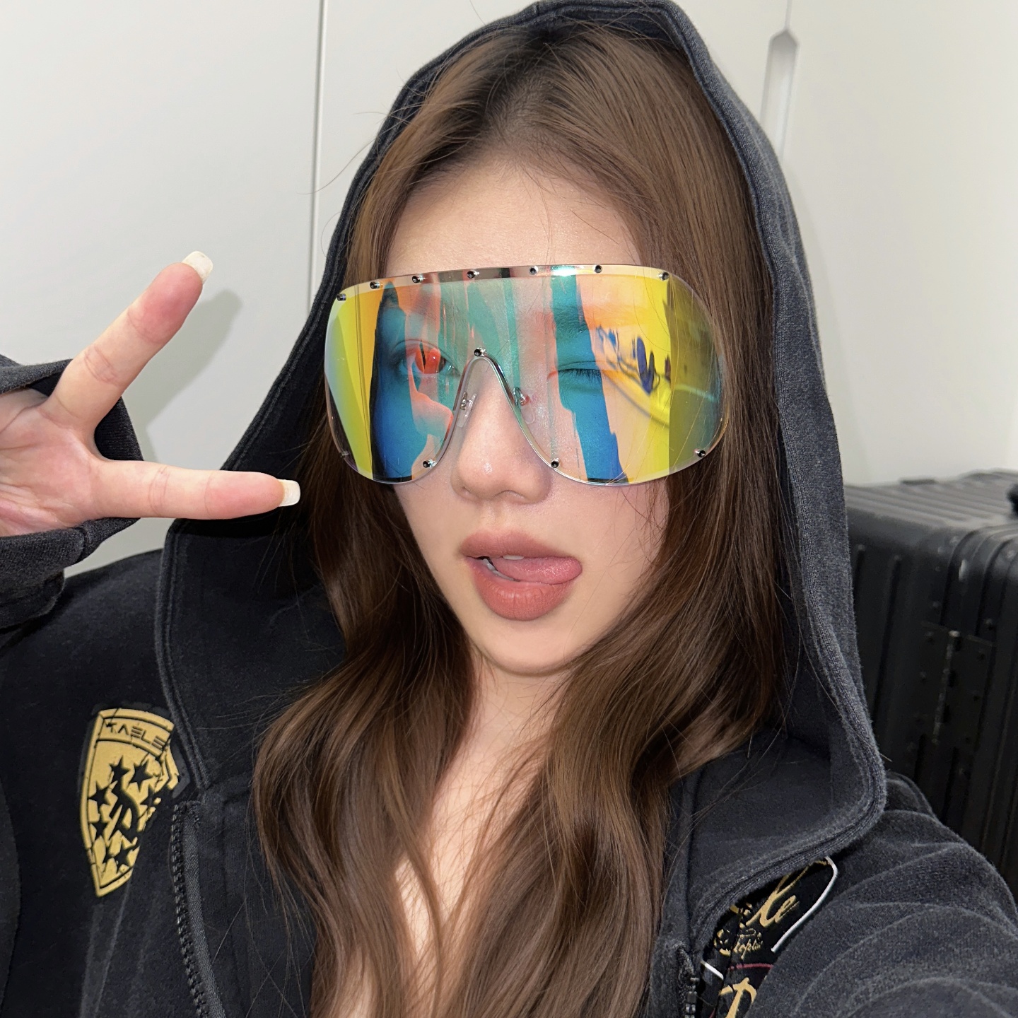超大框黑色铆钉酷炫户外运动骑行滑雪太阳眼镜女潮方圆脸显瘦墨镜