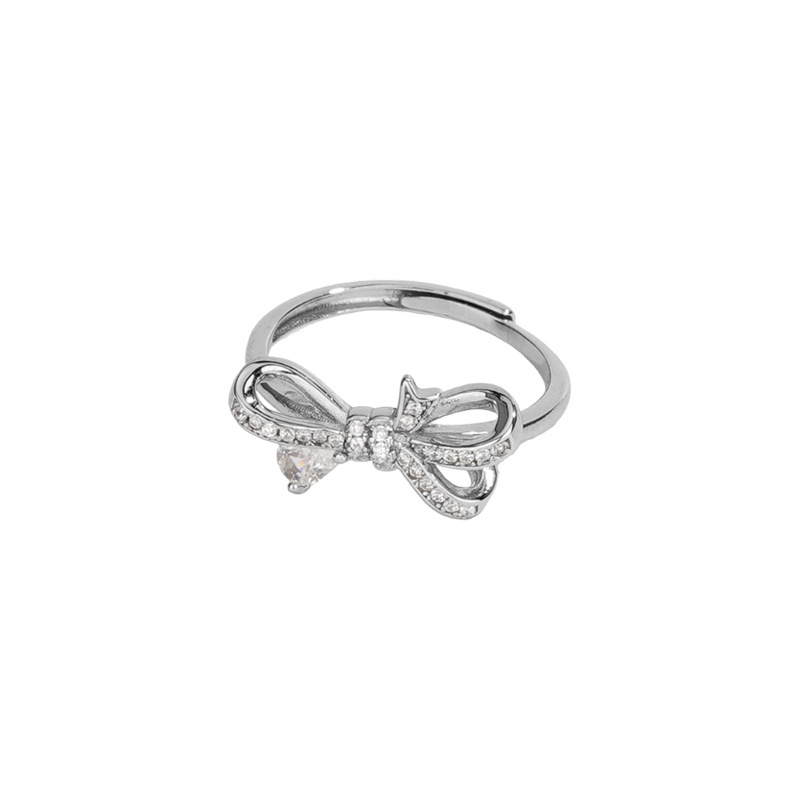 蒂奇实拍S925纯银时尚轻奢蝴蝶结戒指女精致高级感闪钻食指戒指