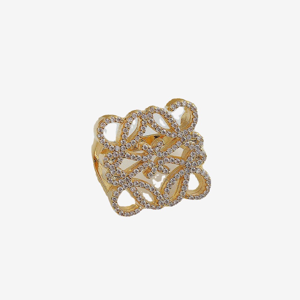 欧美镂空方形镶钻戒指18K金不褪色高级感轻奢食指气质轻奢戒指环