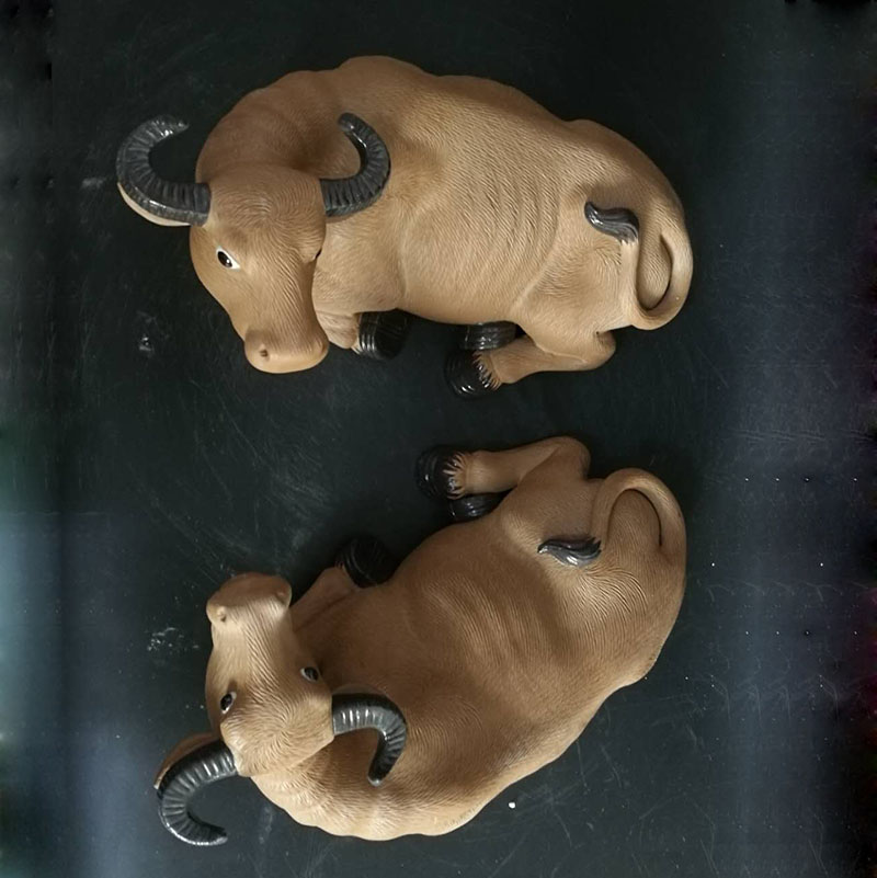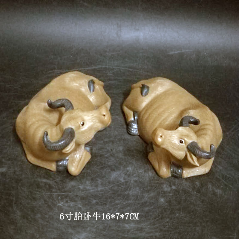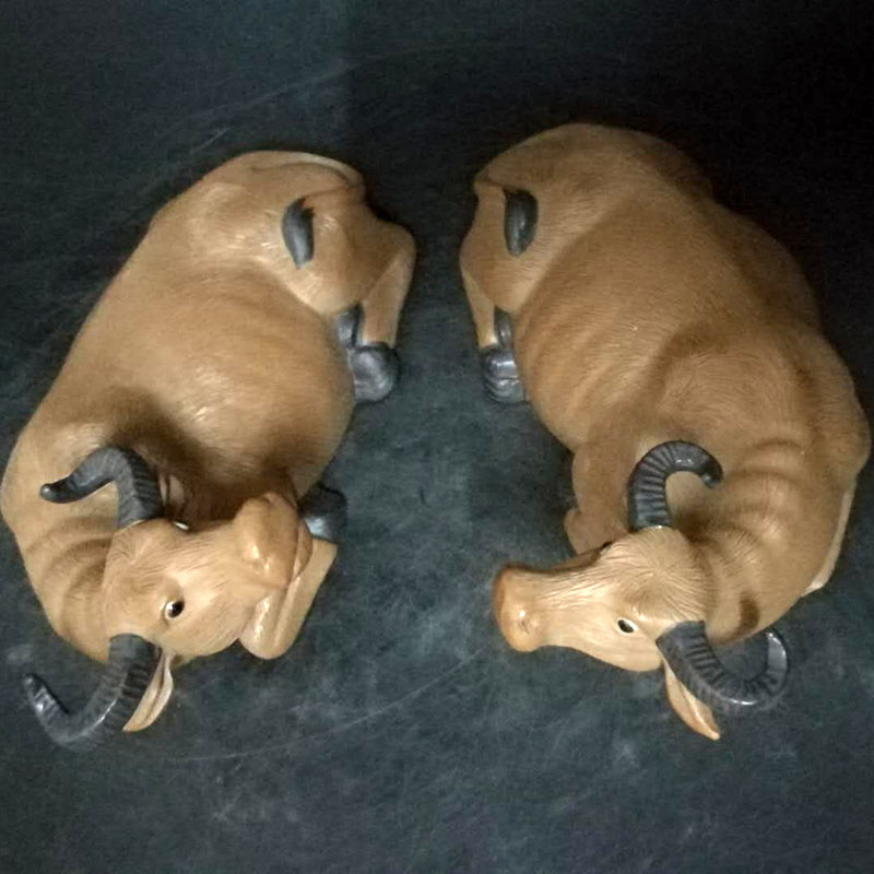 陶瓷黄色卧牛摆件招财水牛新房开业礼品假山玄关前台客厅假山摆设