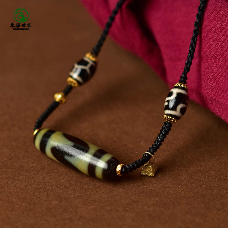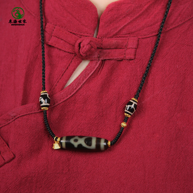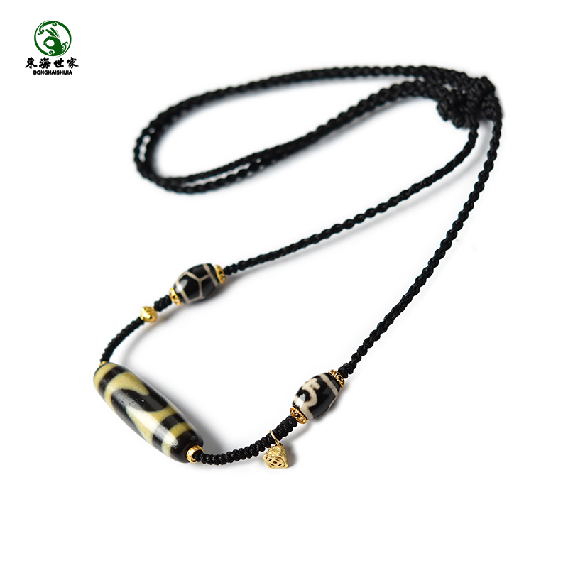 天珠项链女男西藏真品至纯三眼虎牙天珠项坠挂绳锁骨链玛瑙吊坠