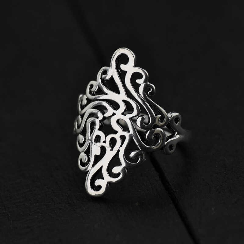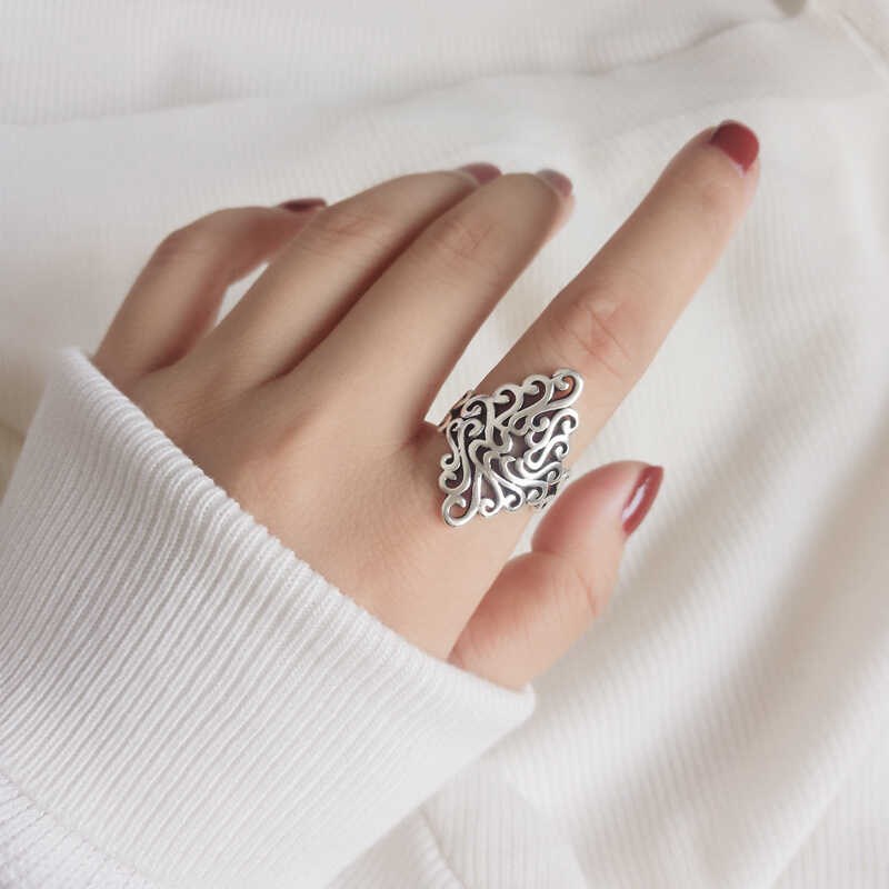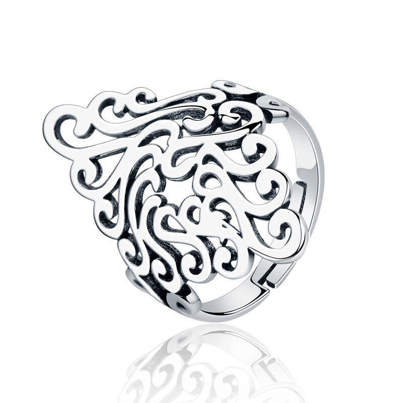 s925银戒复古k中国风菱形镂空戒指孔雀祥云个性简约泰银开口指环