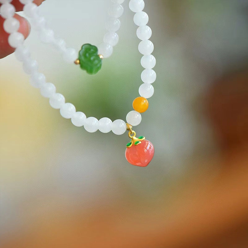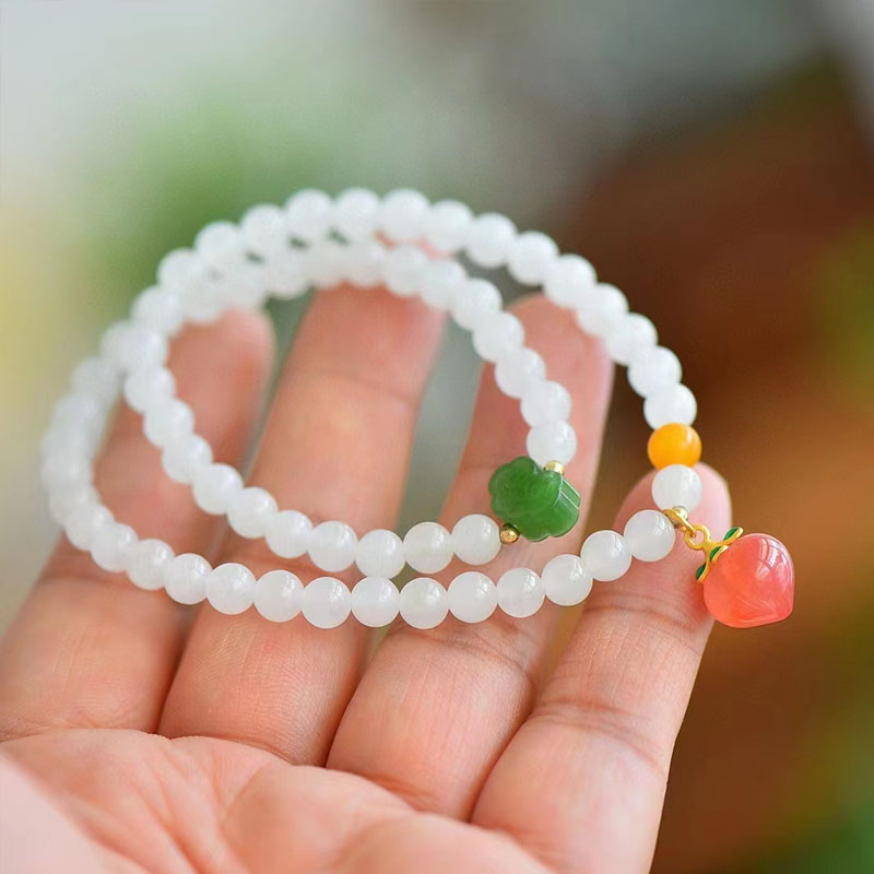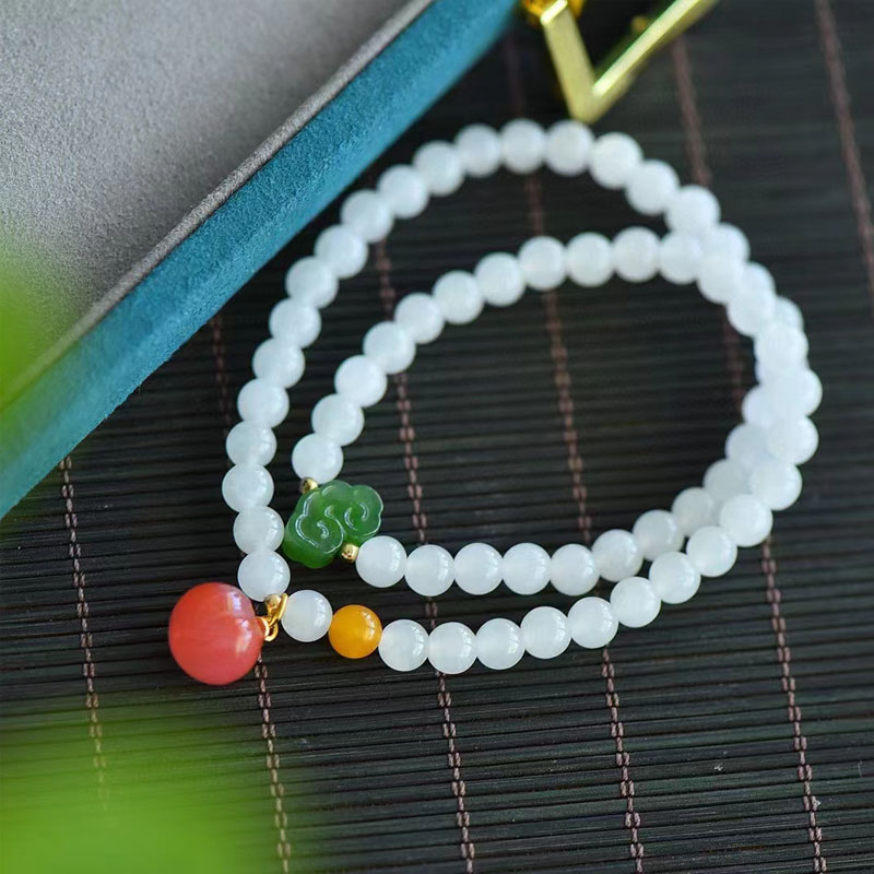 天然和田白玉盐源水蜜桃两圈女生清新手链女白色多圈碧玉祥云手串