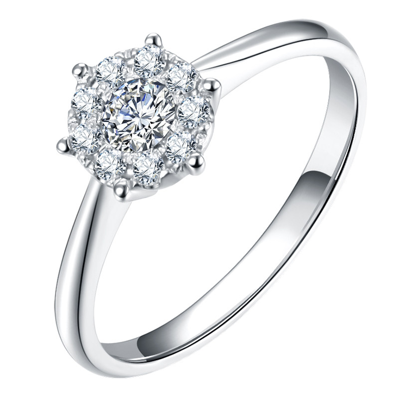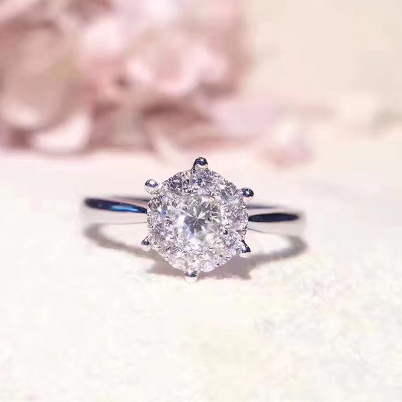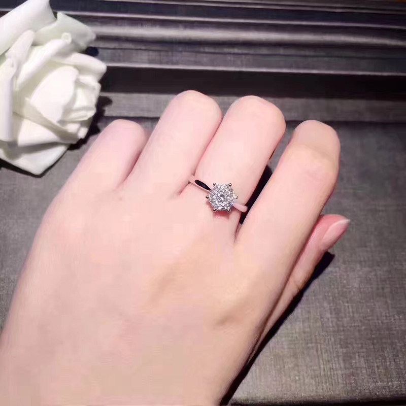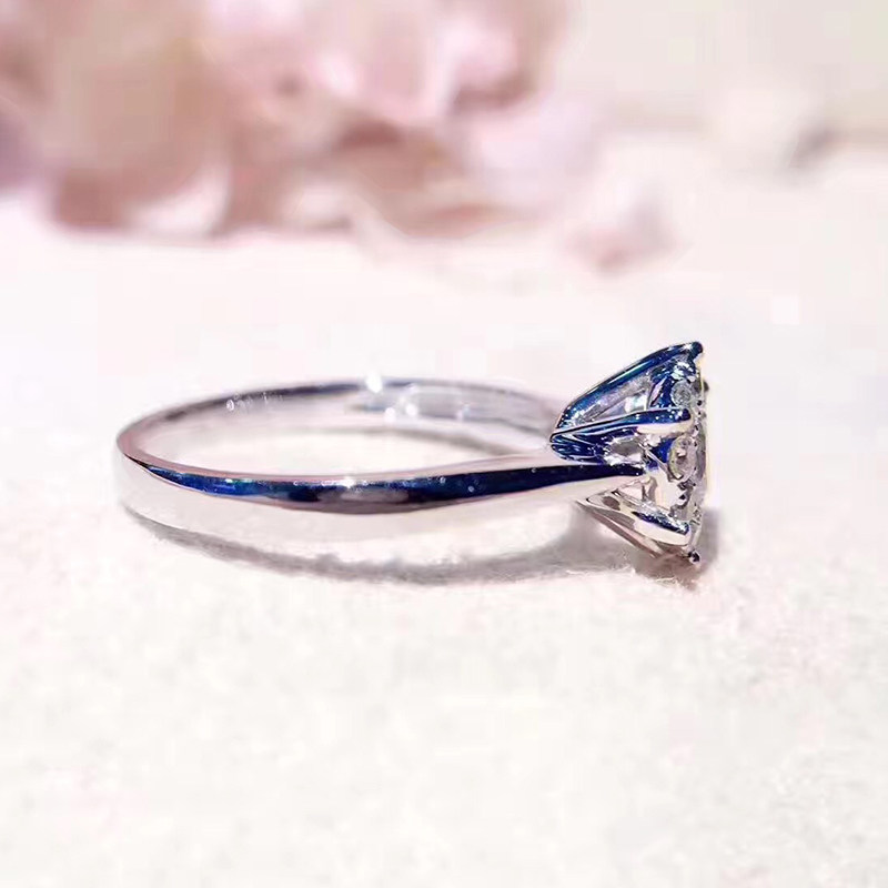 18K白金钻石戒指 女六爪结婚钻戒1克拉效果9围1显大真钻戒指 订婚