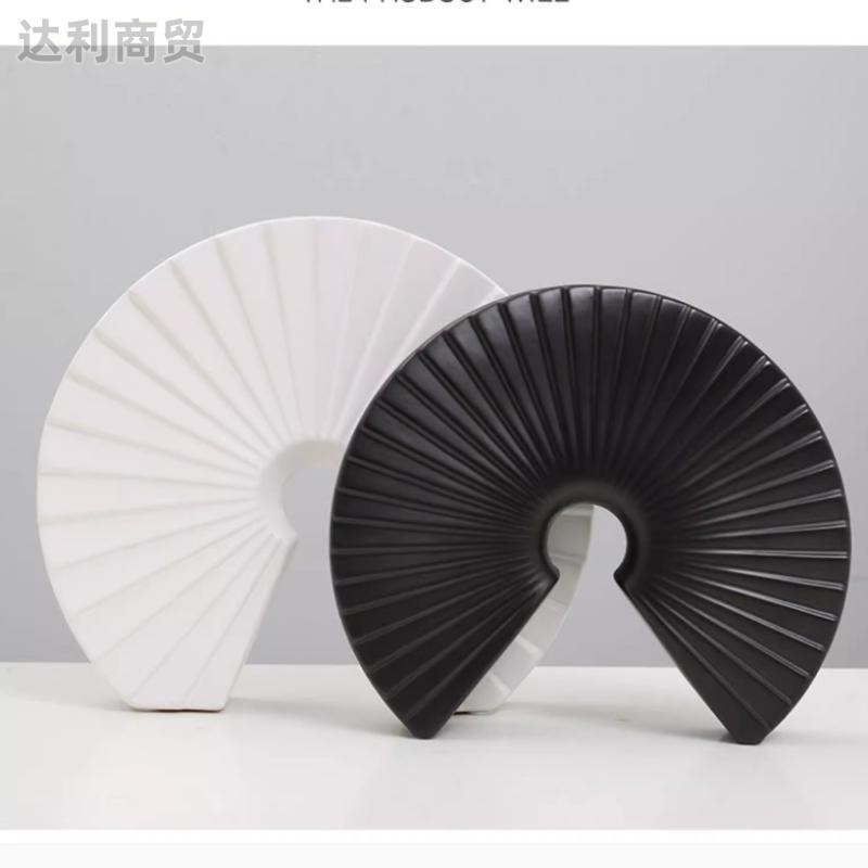 黑色白色扇形抽象艺术陶瓷摆件样板间办公室客厅电视柜工艺装饰品