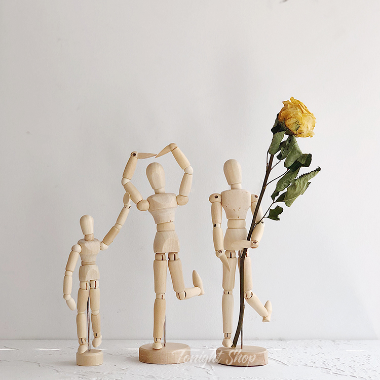 北欧风ins创意木头人活动关节人偶桌面摆件民宿家居装饰摆拍道具
