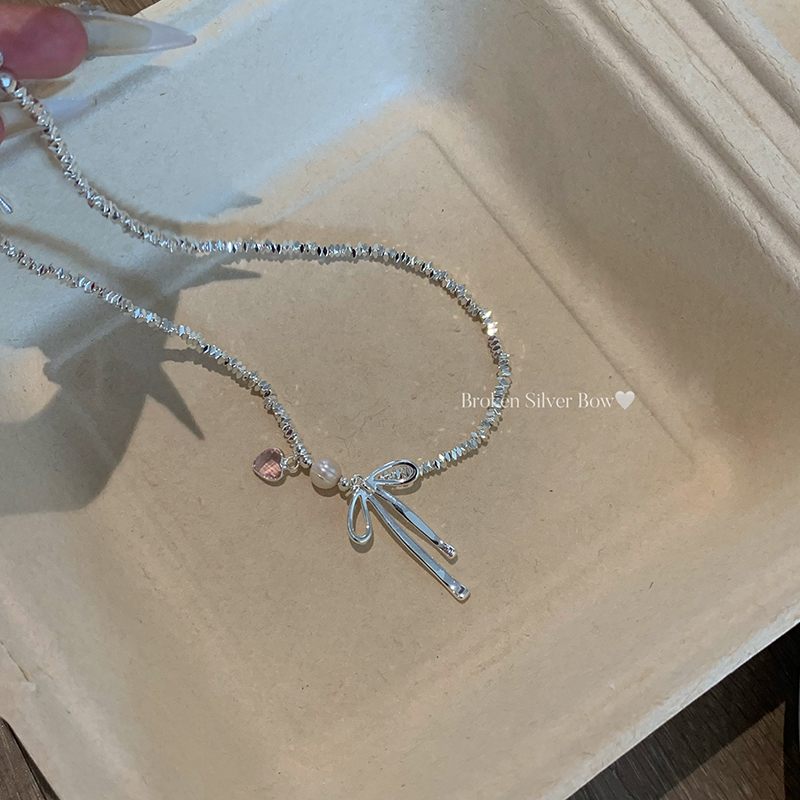 甜酷水晶串珠蝴蝶结项链女轻奢小众高级感锁骨链辣妹风百搭毛衣链