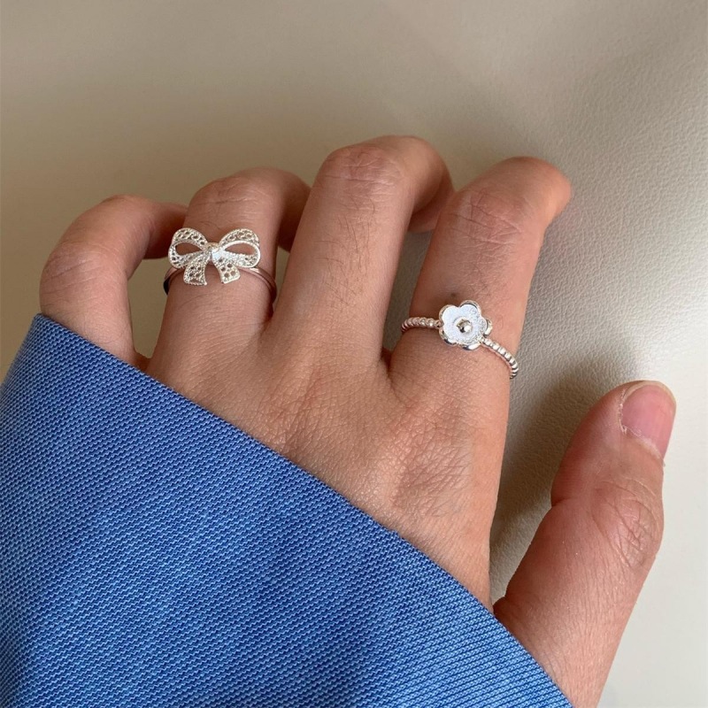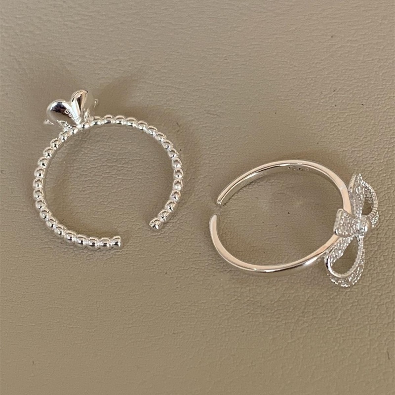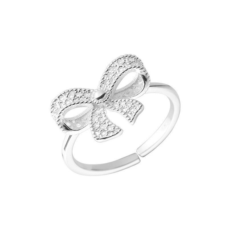 甜美蕾丝蝴蝶结戒指女简约时尚气质S925镀银开口指环小众食指戒潮