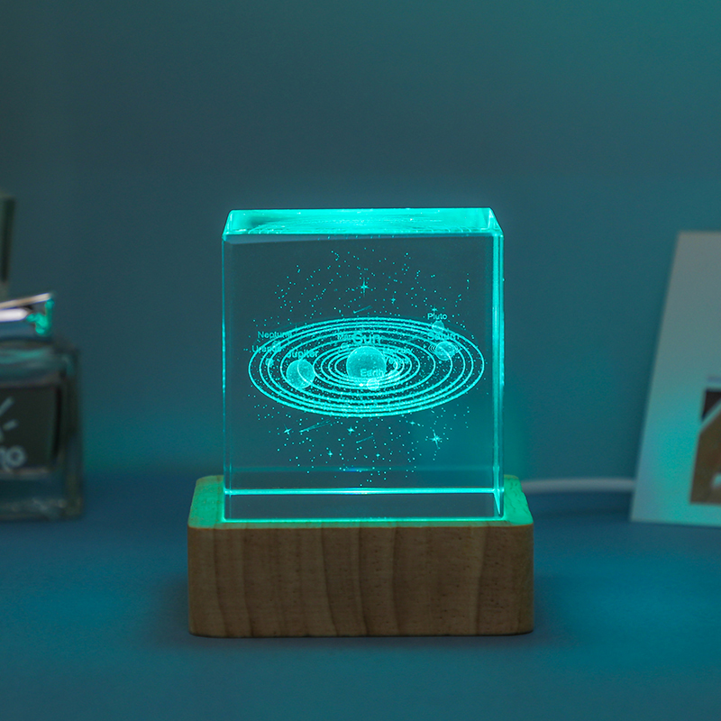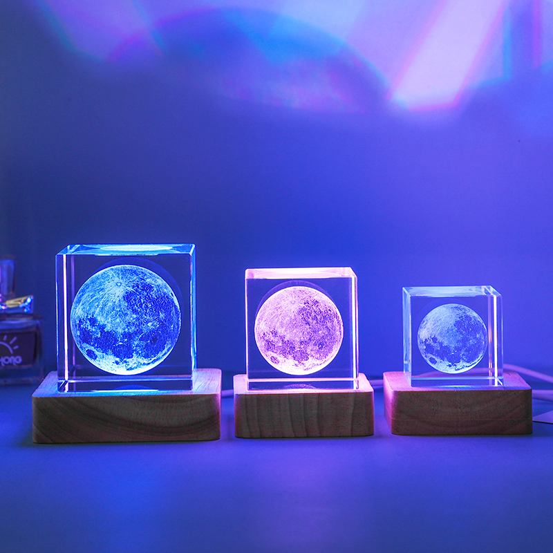 创意月球爱心云朵方形水晶摆件房间桌面装饰品可发光送人生日礼物