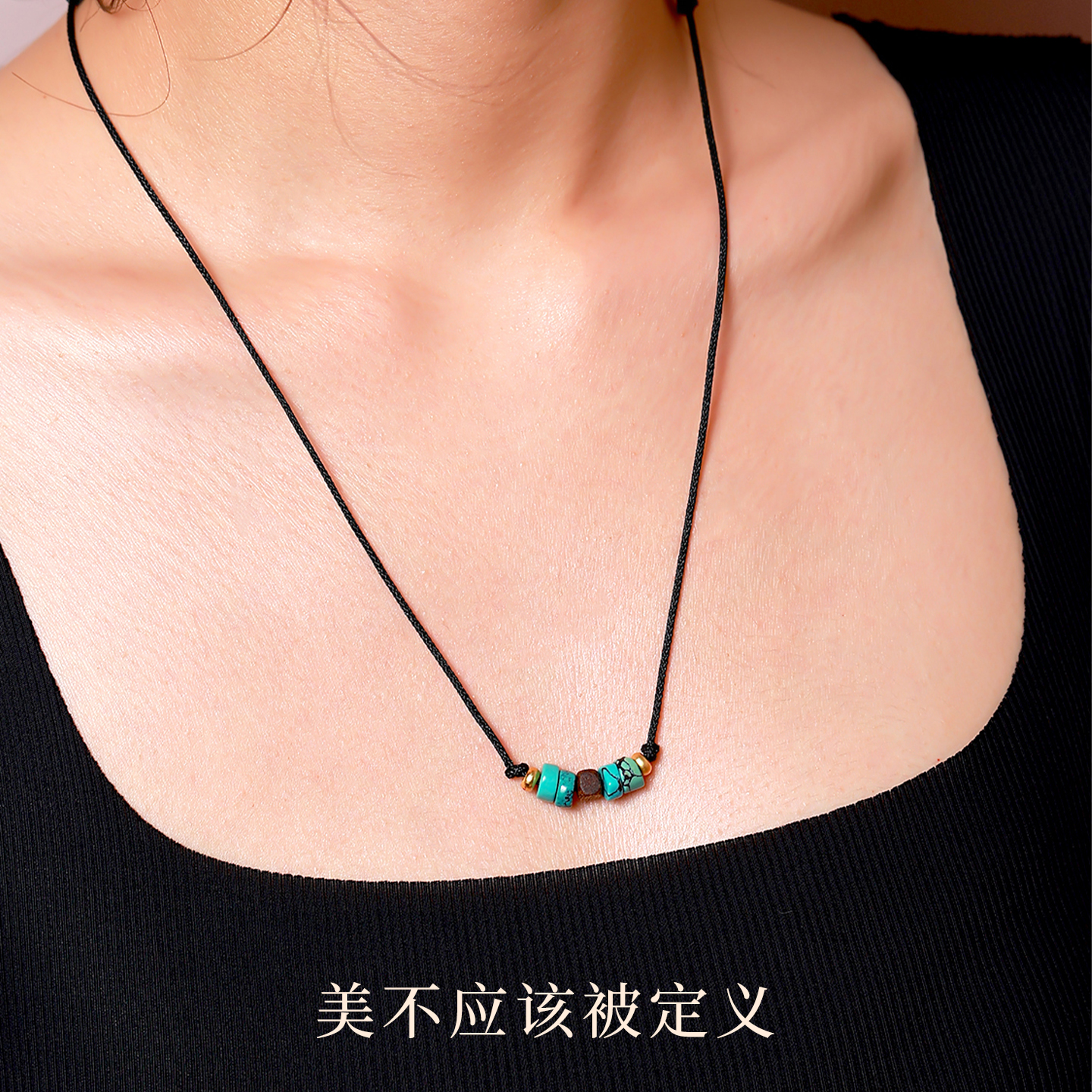 多宝仙原创设计手工编织绳绿松石项链情侣同款锁骨链高级吊坠