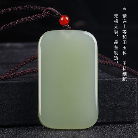 新疆和田玉平安无事牌吊坠男士玉石项链挂件浅鸭蛋青面包牌玉佩