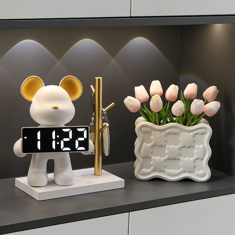 创意暴力熊玄关摆件家居饰品客厅电视柜装饰桌面摆设电子数字时钟