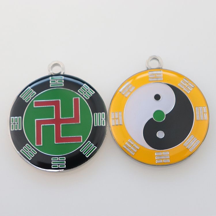 3CM双面后天八卦万字符太极烤漆吊坠项链九彩红人挂件