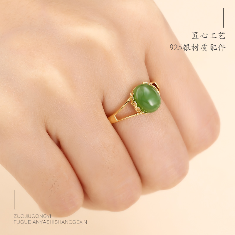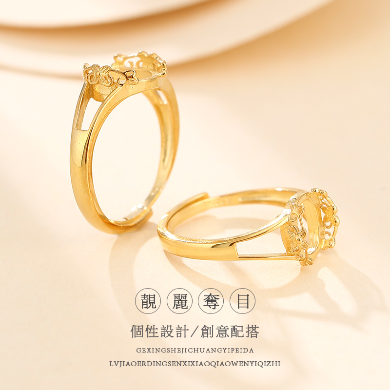 纯银diy戒指空托女蜜蜡琥珀戒托空托18K黄金戒指托碧玉和田玉戒托