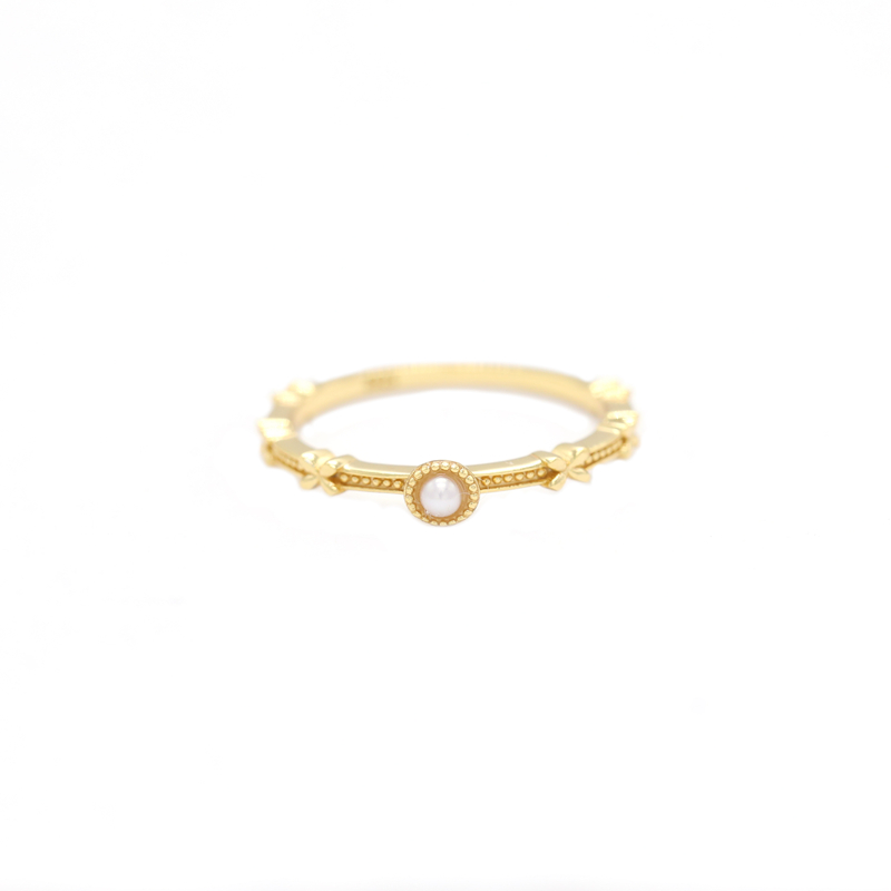 四叶草花冠。日系轻奢迷你小可爱天然淡水珠925纯银镀金戒指礼物