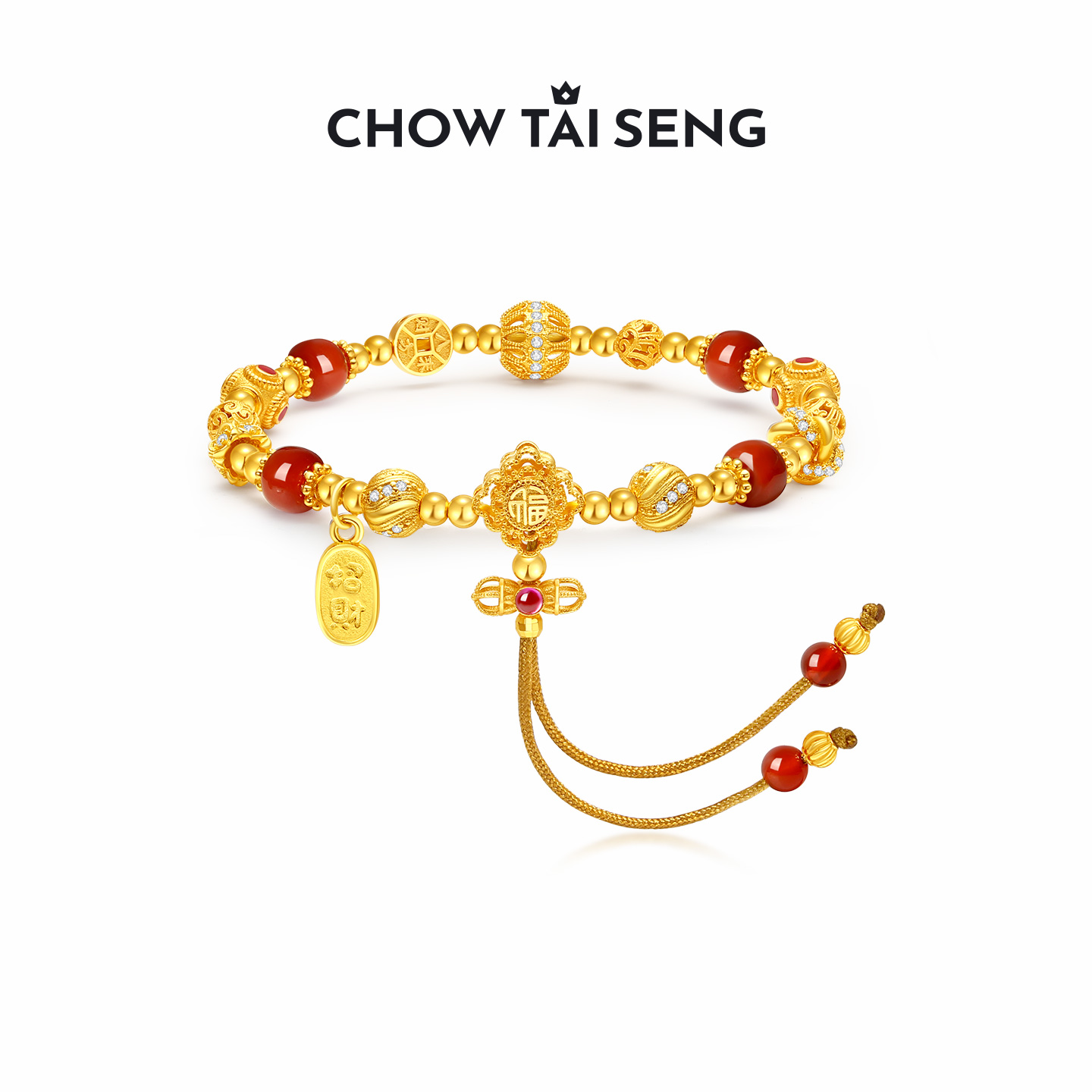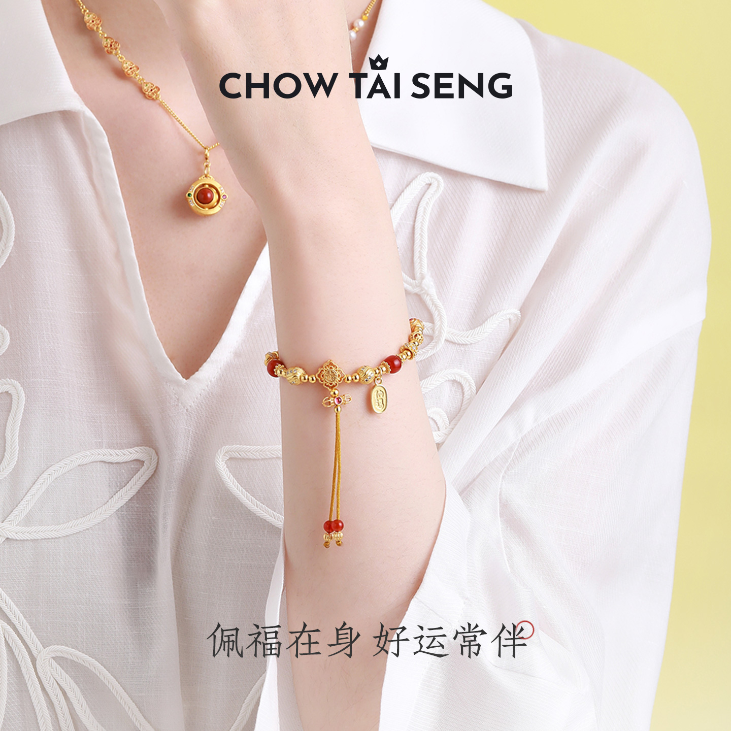 周大生八方来财纯银S925手串红玉髓国潮手链新中式生日礼物送女友