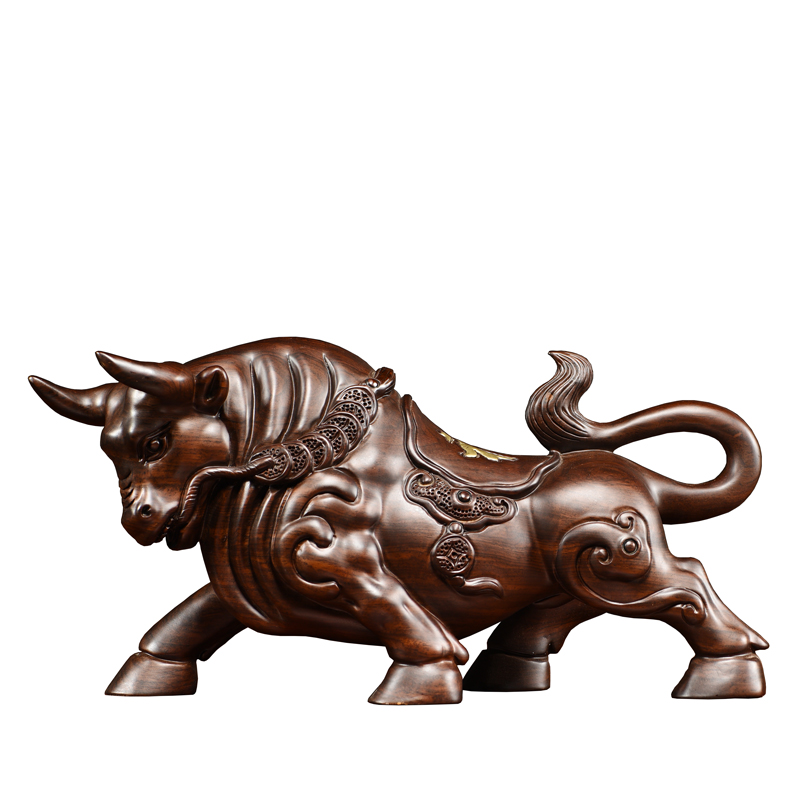 黑檀木雕生肖牛摆件实木华尔街牛家居客厅办公室装饰红木工艺礼品