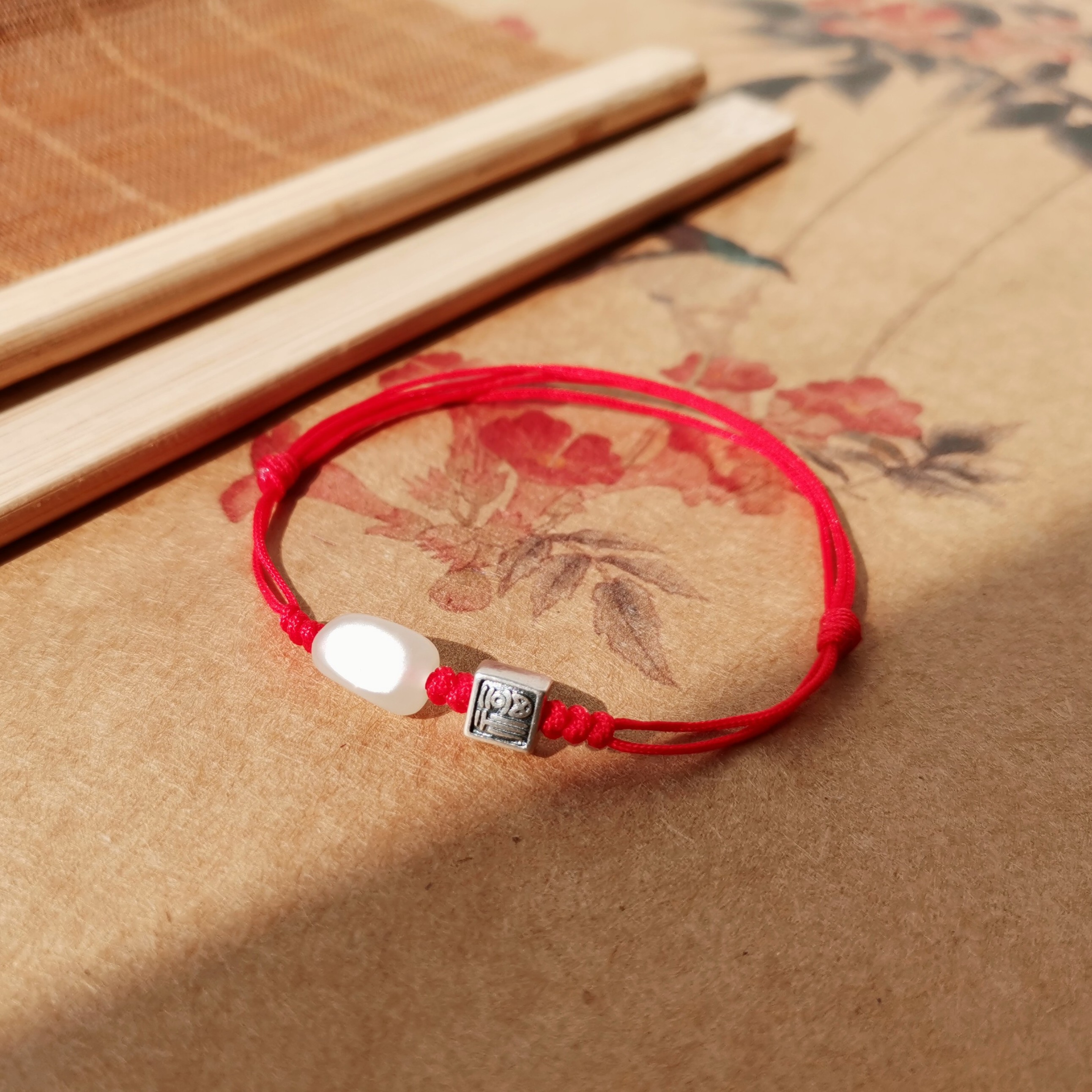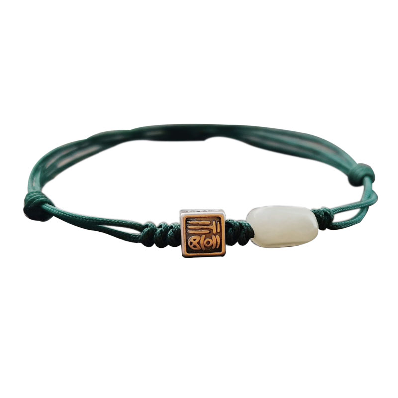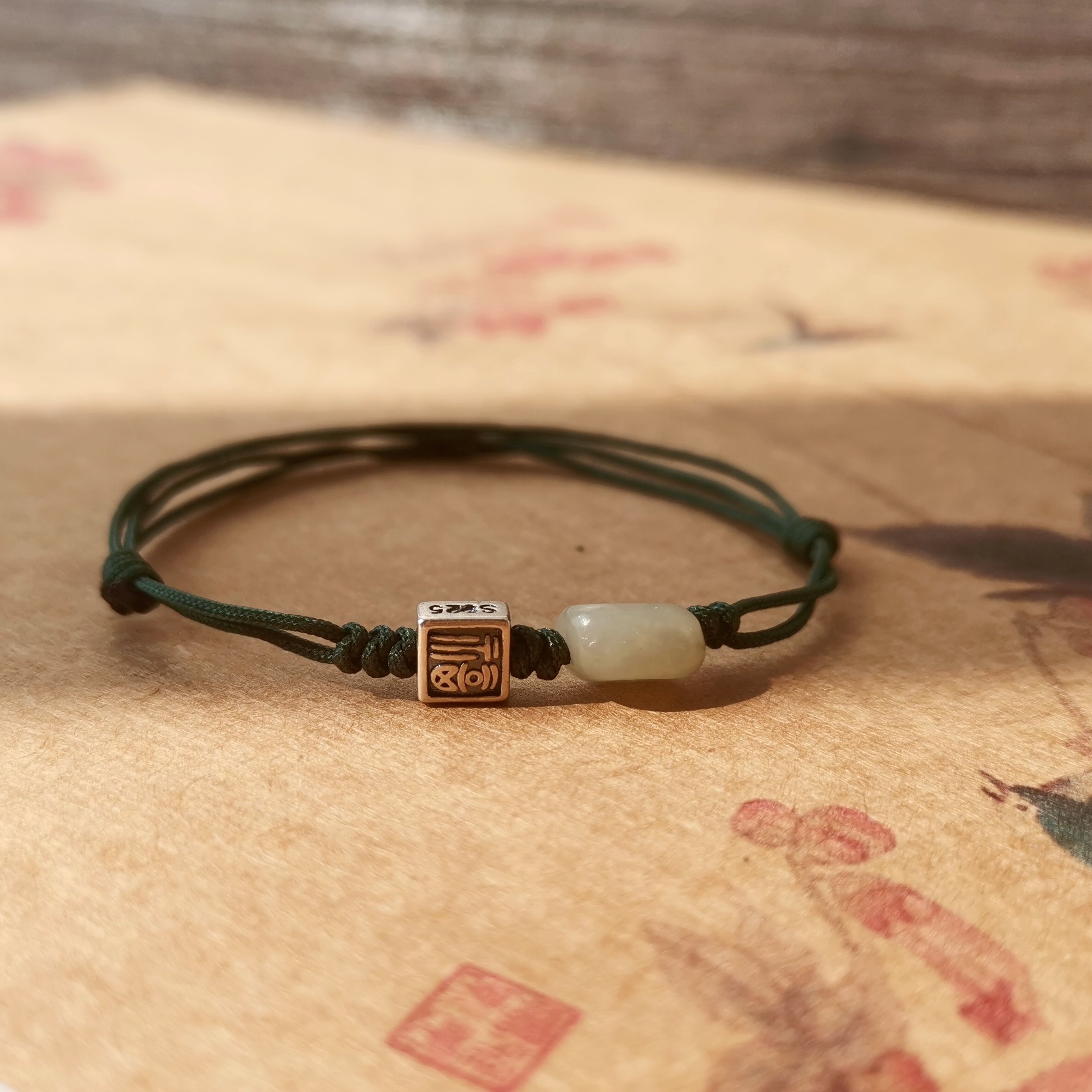 浅喜 原创文艺中国古风和田玉银福字红墨绿编织男女民族百搭手绳