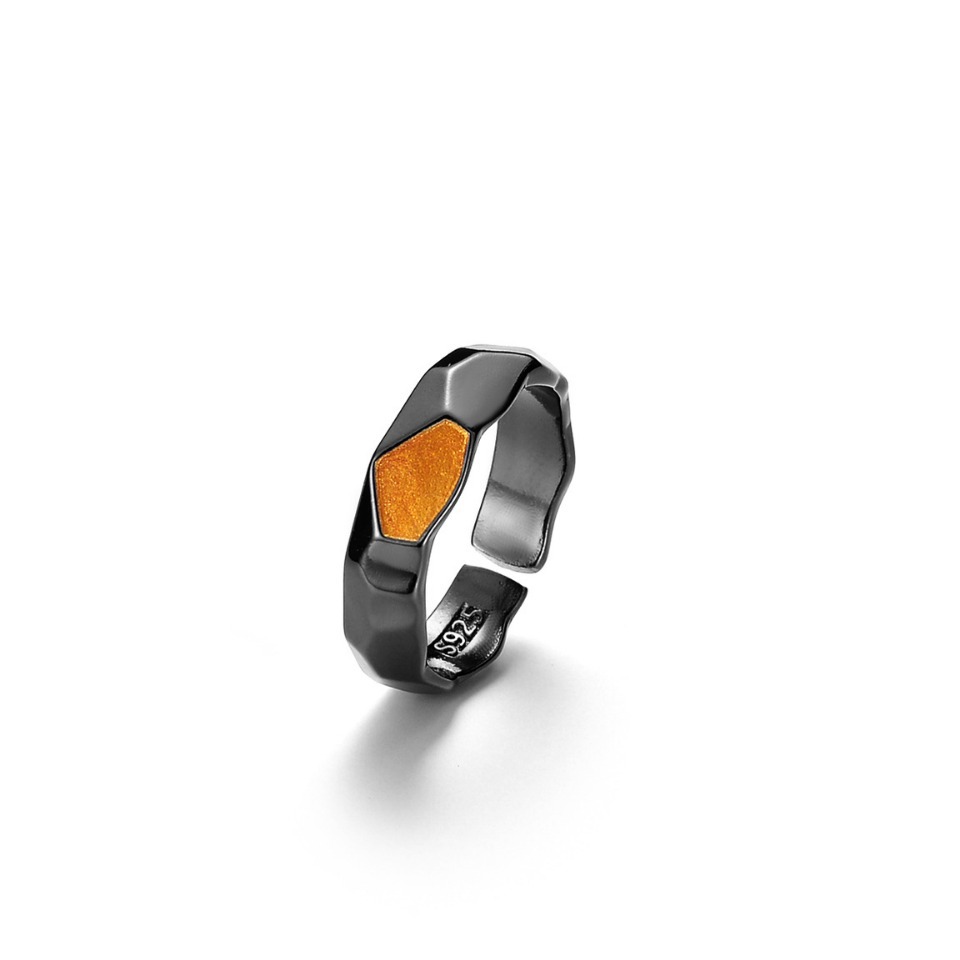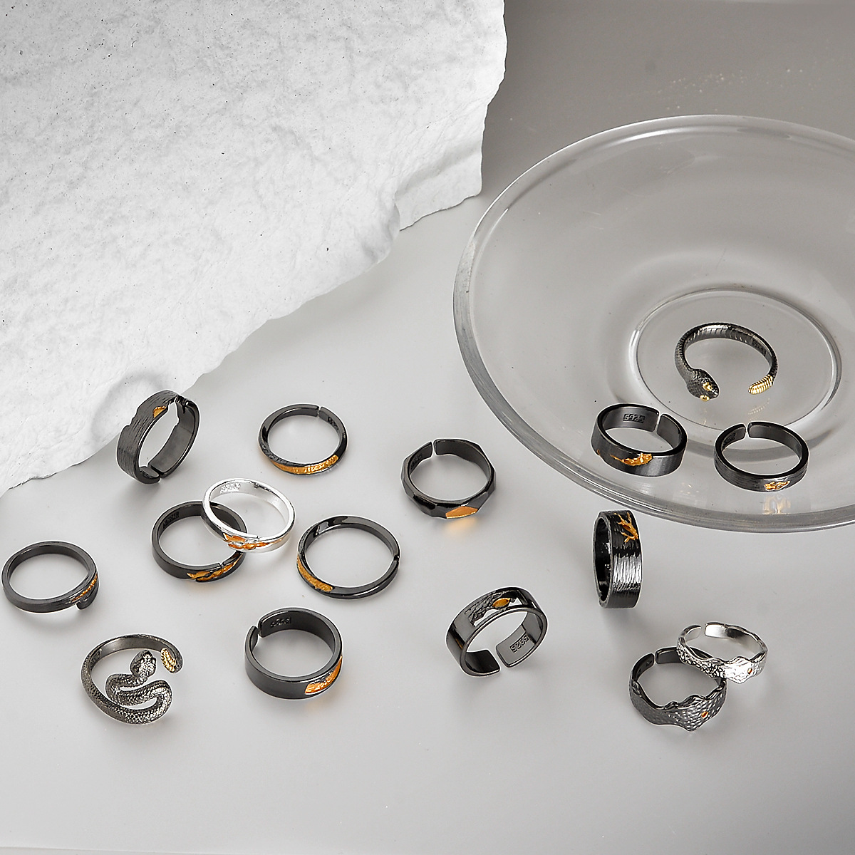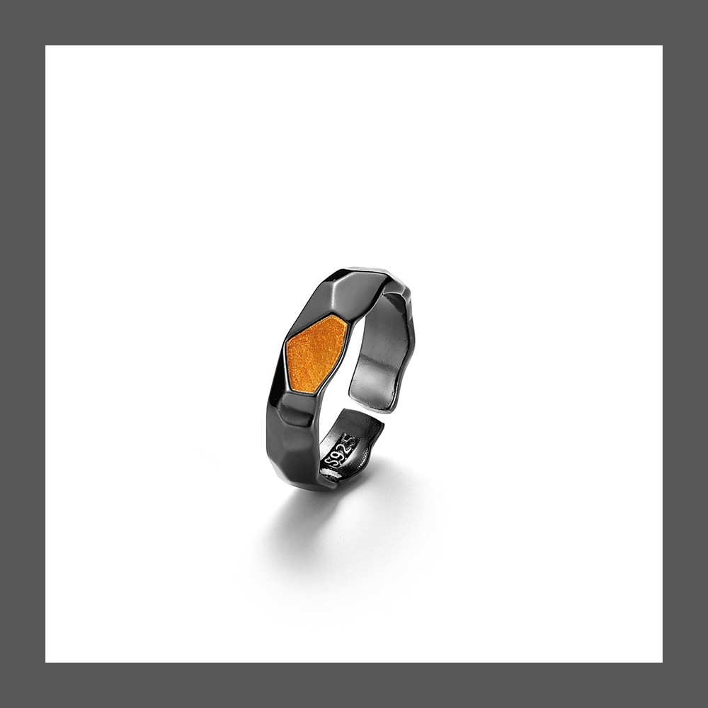 国风潮铜镀银手工饰品新款山石士戒指轻奢黑色点石成金百搭简约环