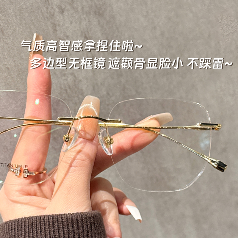 超轻钛架无框多边形眼镜近视女可配度数高级感纯欲大框显瘦眼睛架