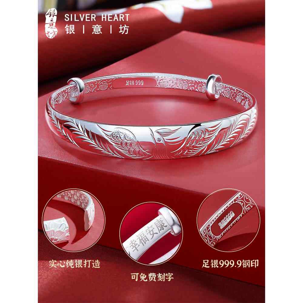 正品生凤凰银手礼银炼9999纯银老人风格奶奶纯手炼日实用物的妈妈