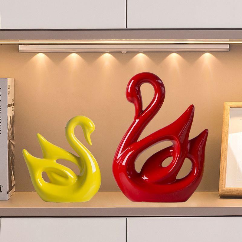 红色摆件高级感客厅天鹅家居轻奢电视酒柜卧室工艺品玄关装饰品