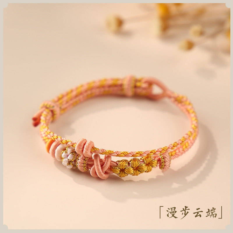 双联结双层桃花手绳可穿黄金转运珠本命年手工编织手链送闺蜜礼物