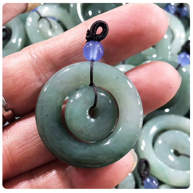 糯种缅甸A活翡翠玉器子母扣平安扣油青玉坠 男女款玉挂件diy配件