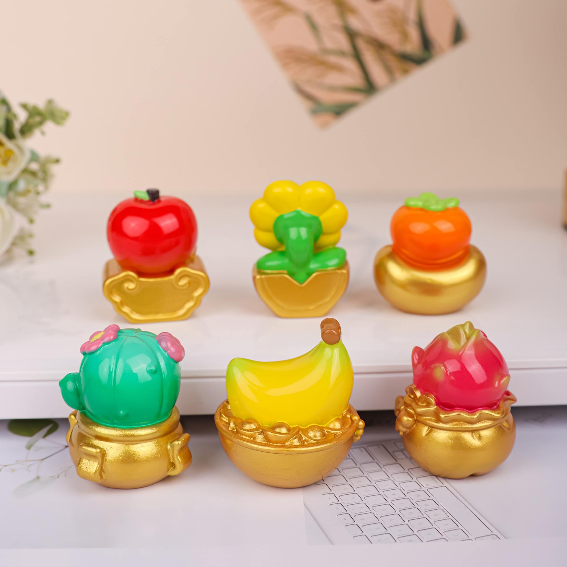 创意果然好运摆件水果聚宝盆精致树脂公仔桌面装饰品工位摆件礼物