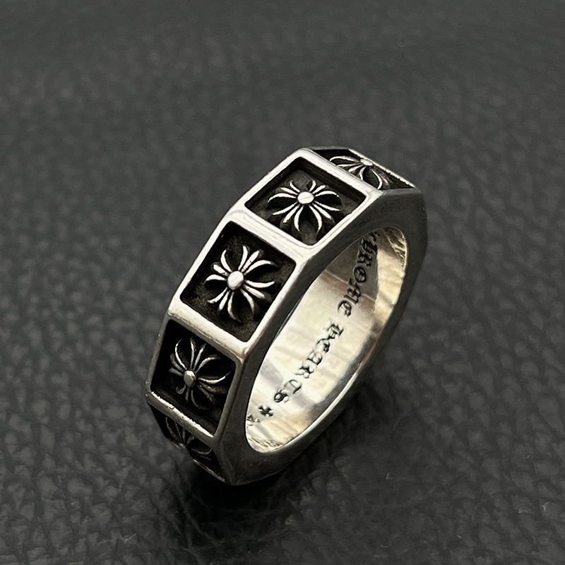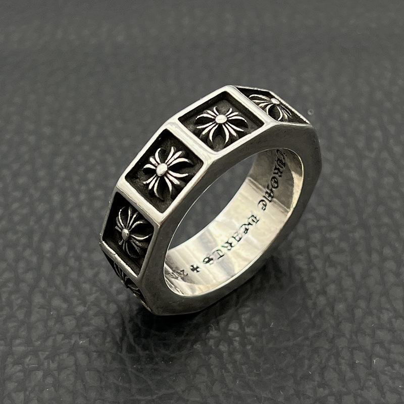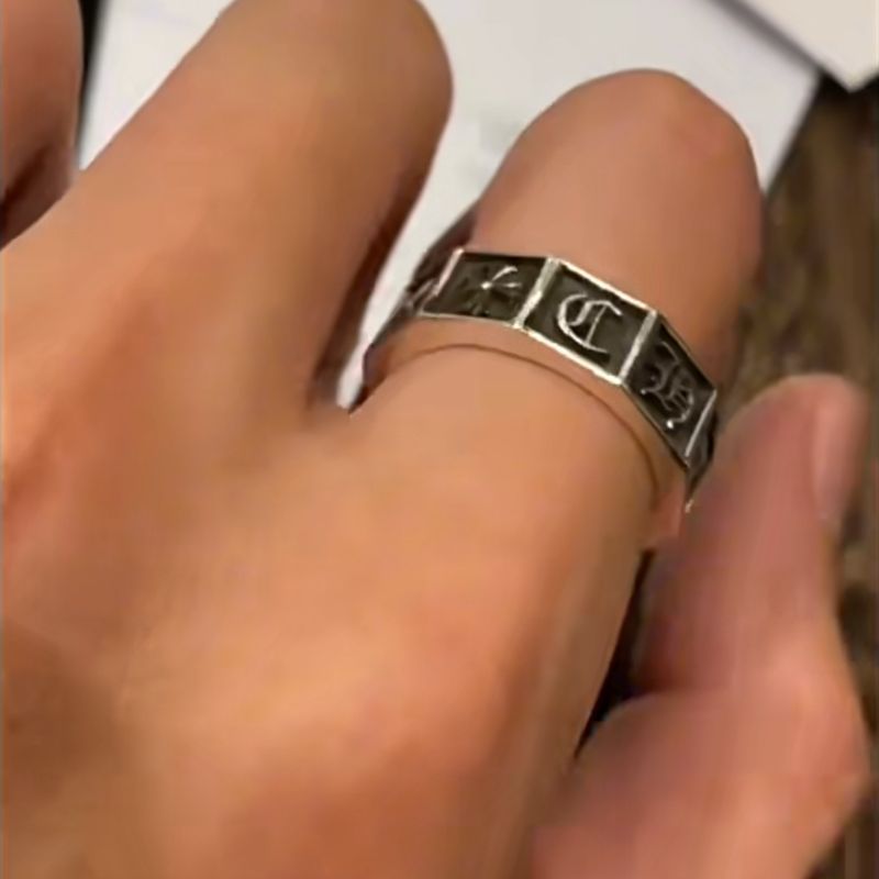 ODEK高级感复古方块十字花戒指男女欧美哥特风个性嘻哈指环经典
