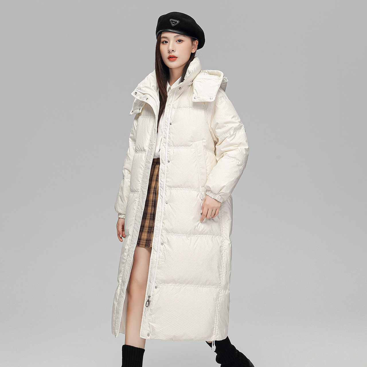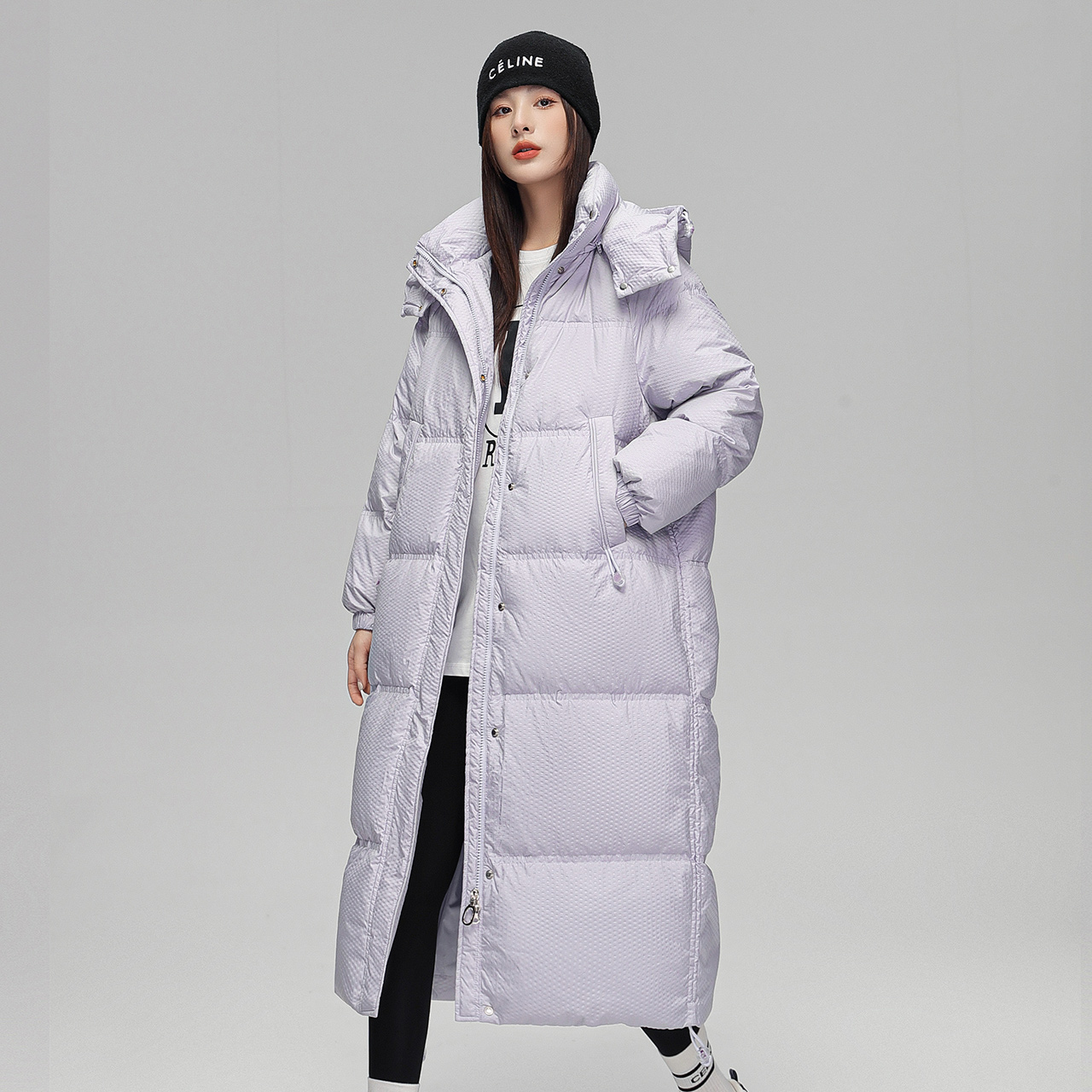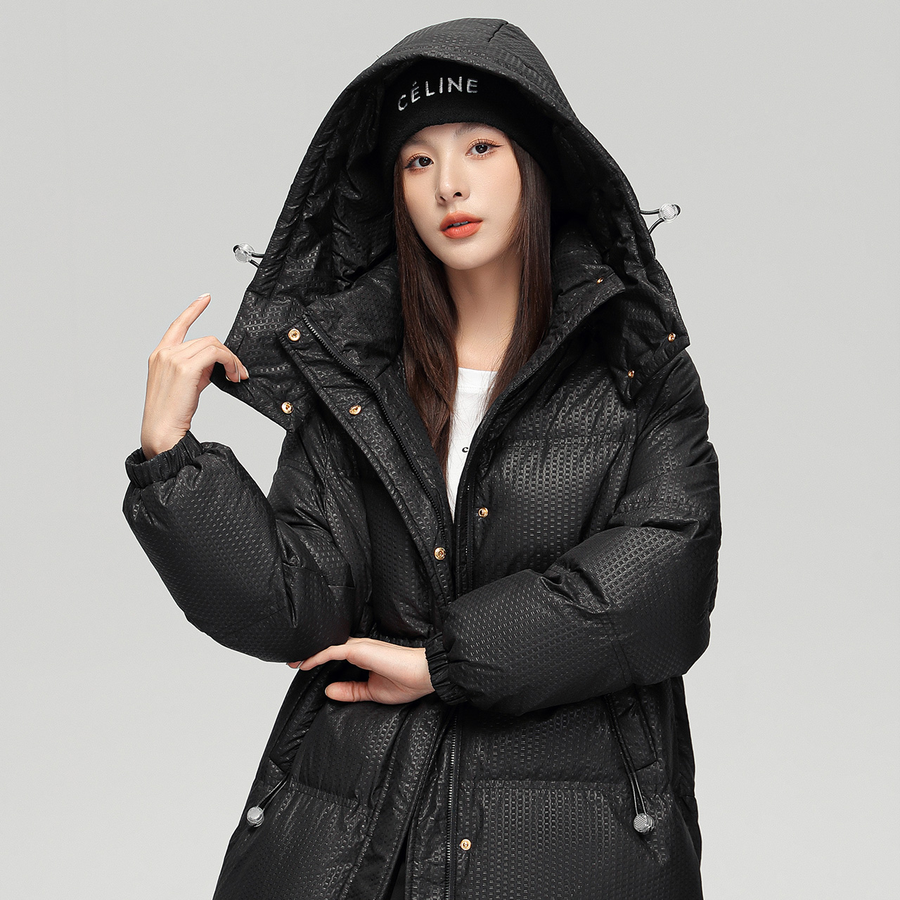 雪中飞冬新款韩版潮流脱卸帽女士长款被子服收腰廓形羽绒服外套