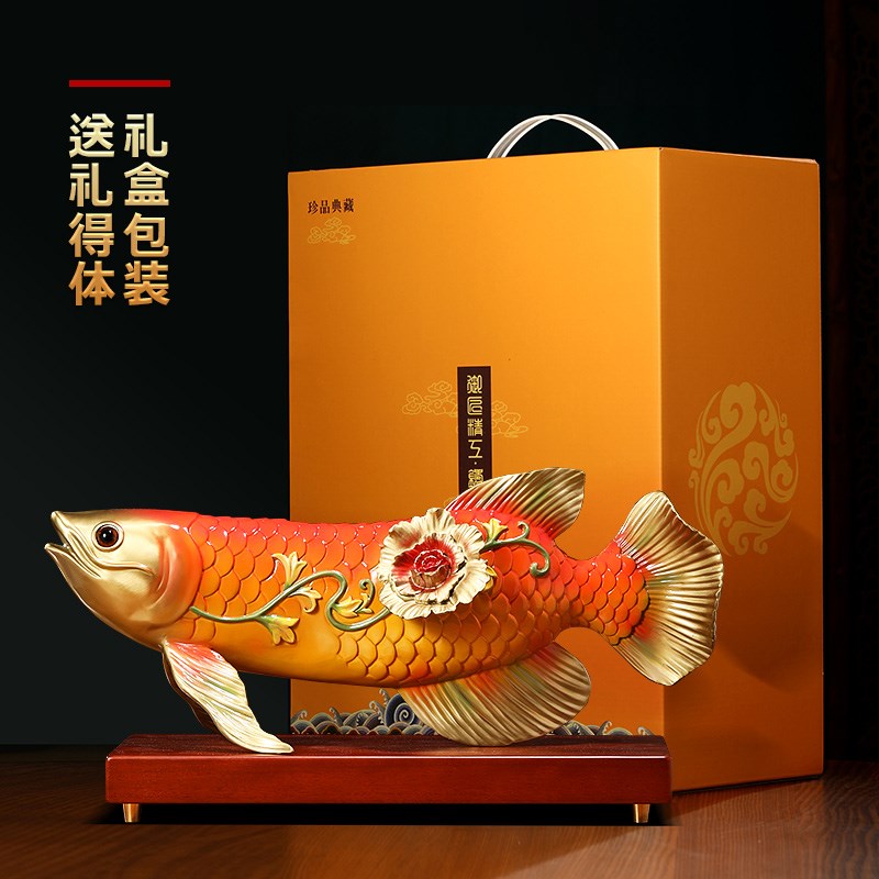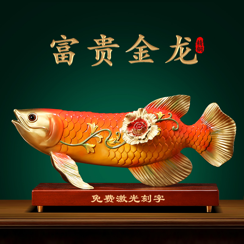 富贵金龙鱼摆件铜工艺品招财客厅酒柜办公室桌面大气装饰乔迁礼物
