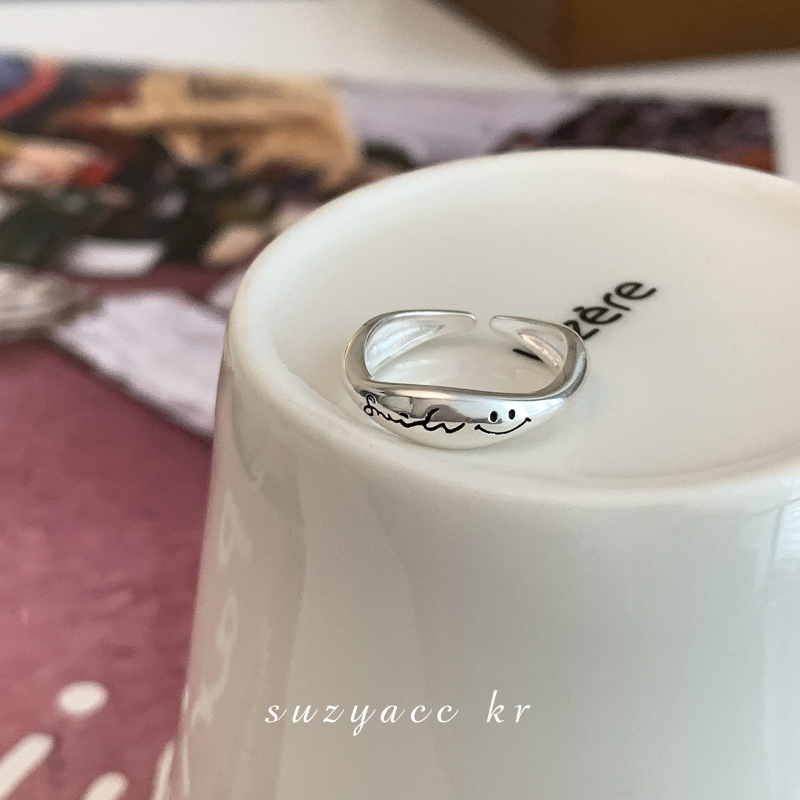 suzyacc kr小众设计纯银笑脸不规则戒指女2025年新款潮简约食指戒
