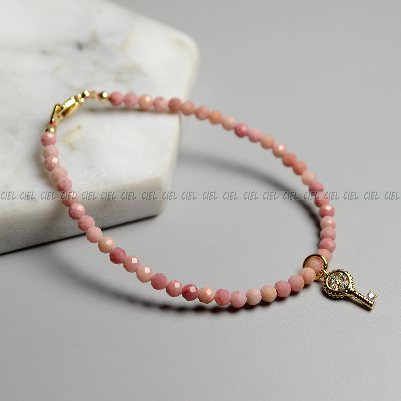 Ciel原创手工天然蔷薇辉石手链极细切面手串脚链项链单身粉嫩显白