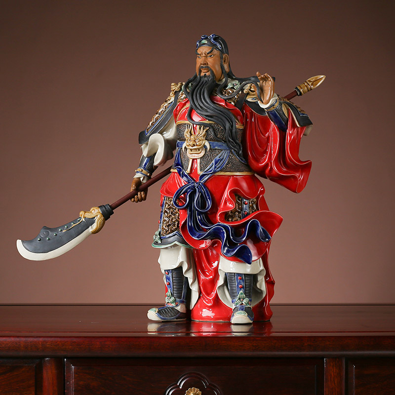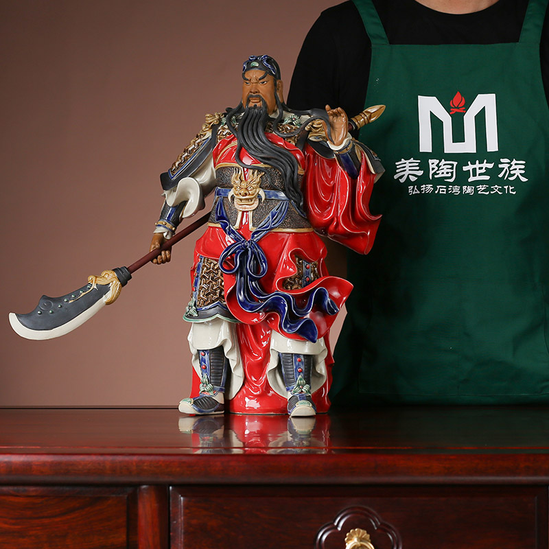 石湾陶瓷公仔大师工艺精品中式家居门客厅招财镇宅装饰关公小摆件