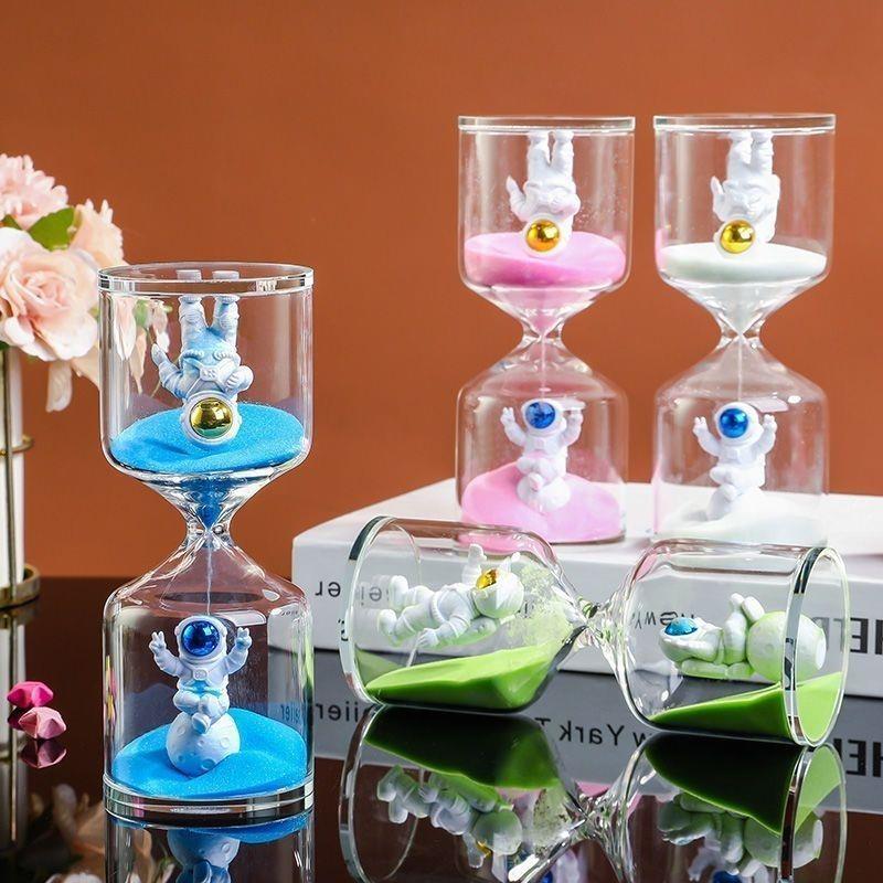 太空人沙漏计时器儿童防摔3/5/10分钟学生吃饭时间流沙瓶礼物玻璃