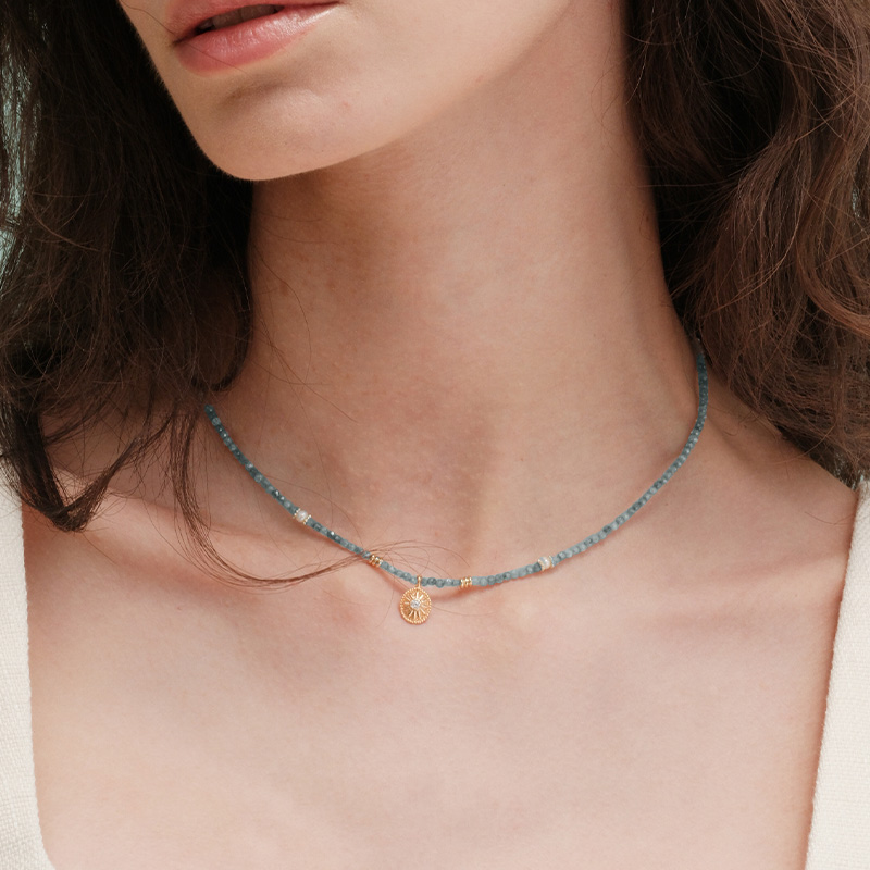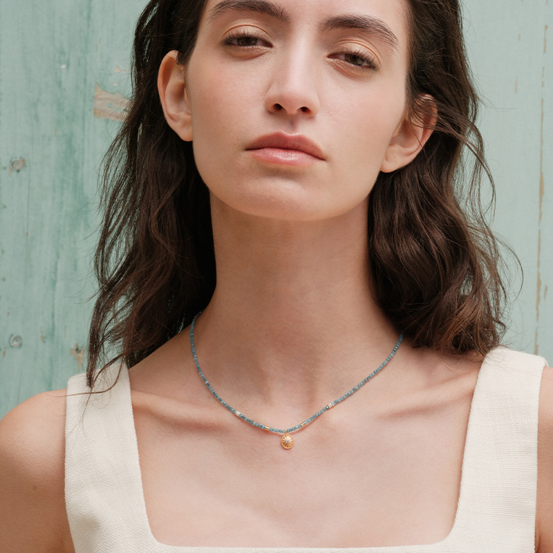 sanswood森吾《椰海日出》蓝锆太阳圆牌项链清凉度假风串珠锁骨链