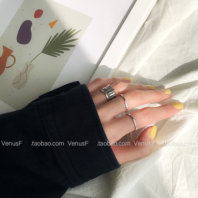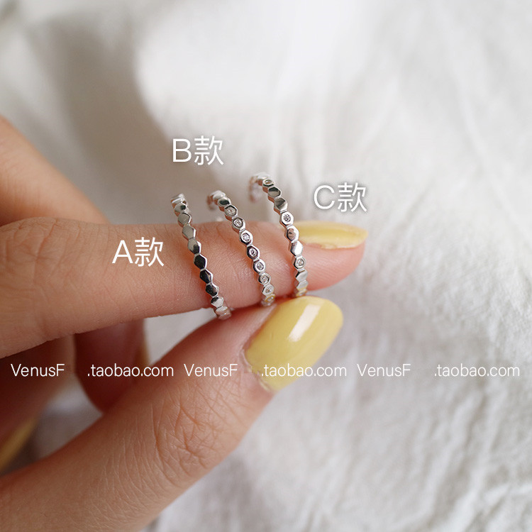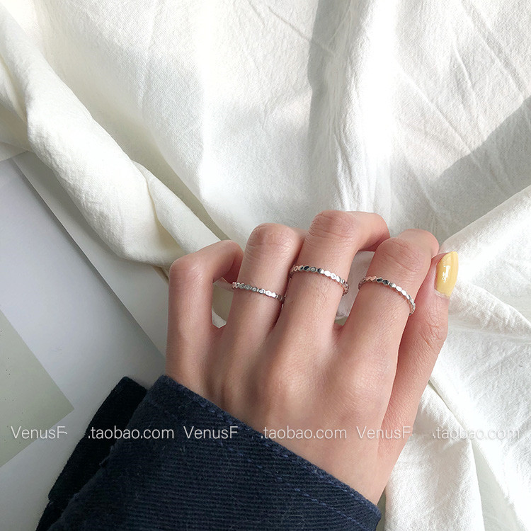 1个包邮925纯银VF定制ins简约3款选圆点超细叠搭戒指指环镶钻韩国